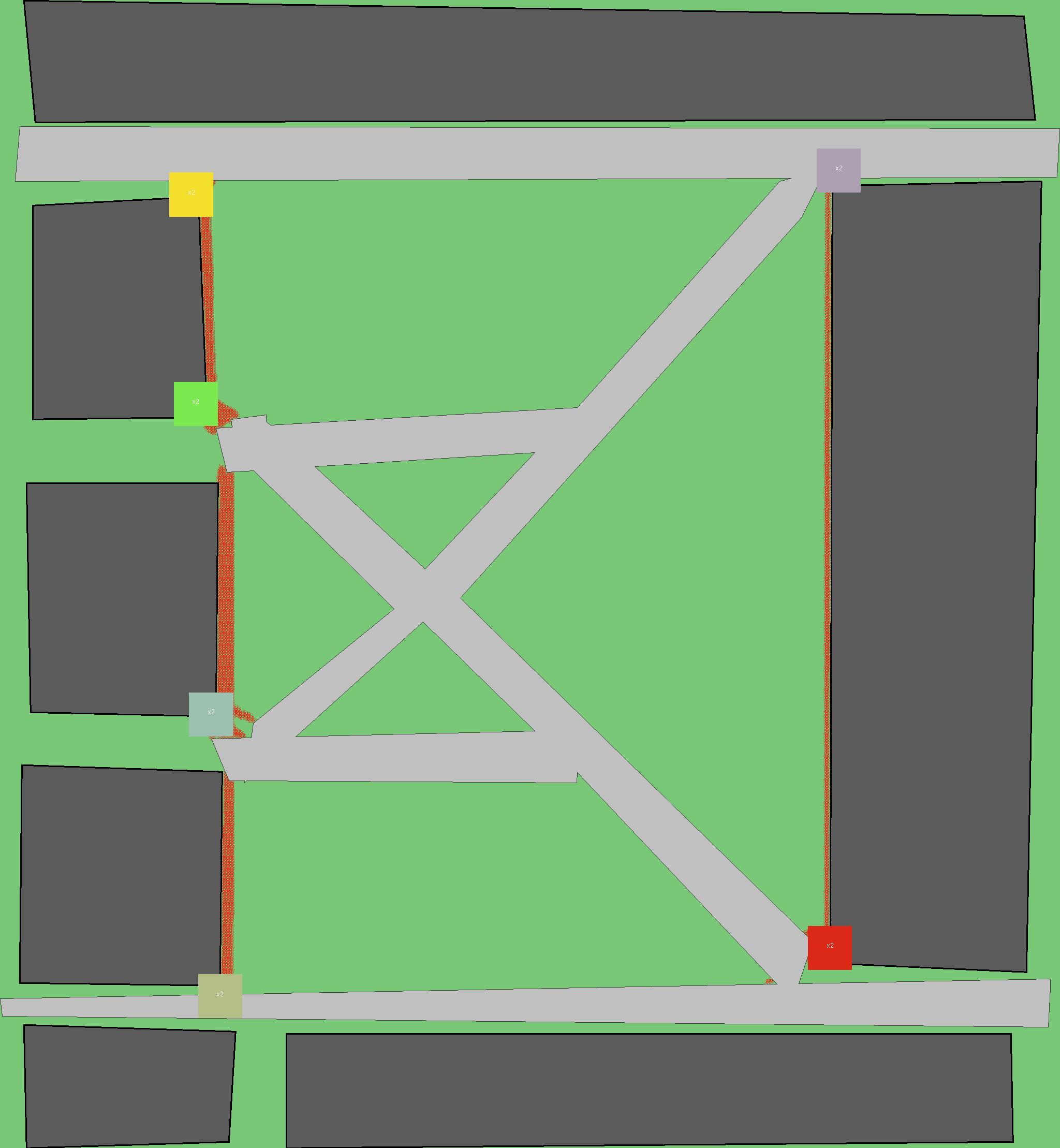 Красным цветом показаны места, где, вероятнее всего, появятся стихийные тропы..