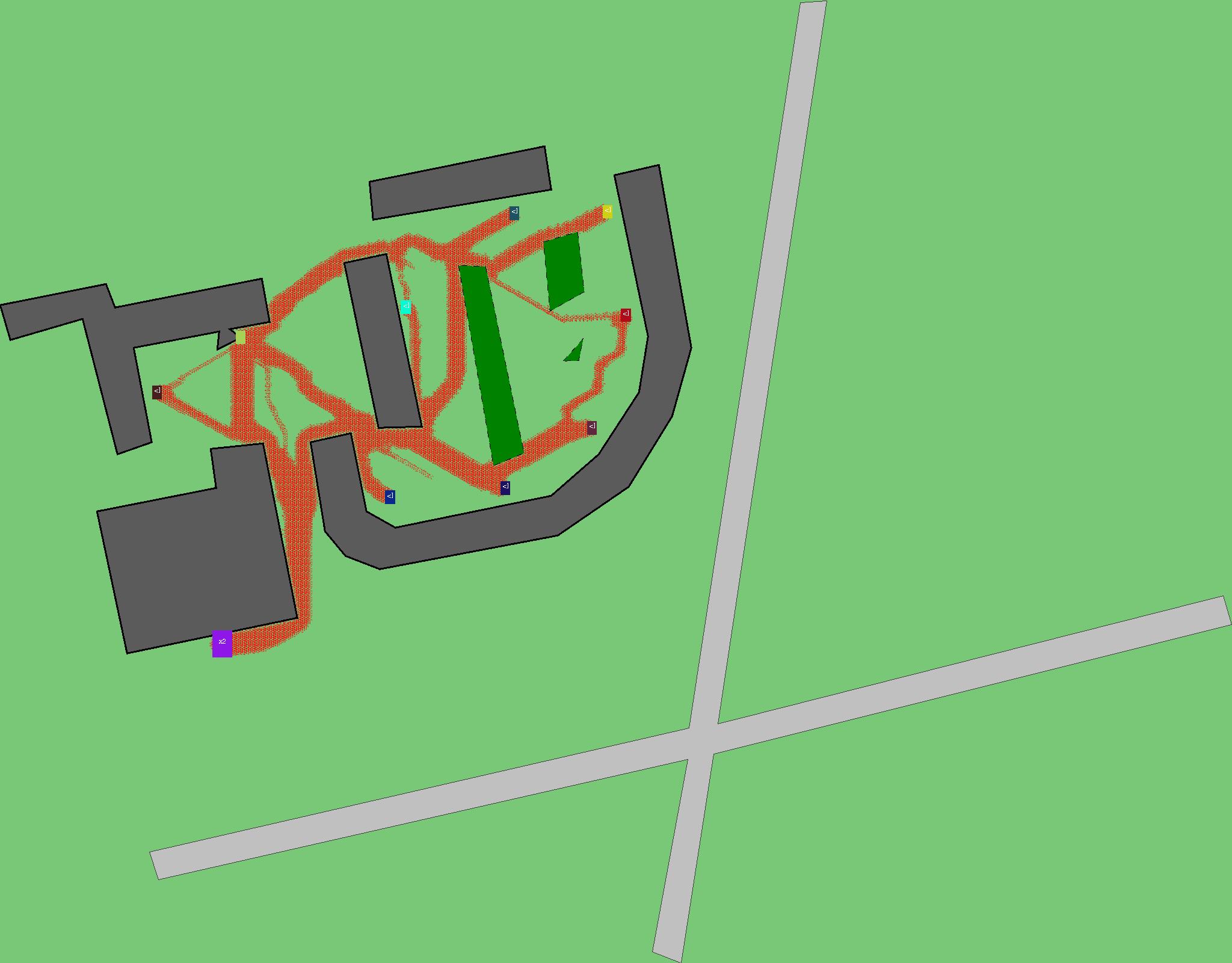 Красным цветом показаны места, где, вероятнее всего, появятся стихийные тропы..