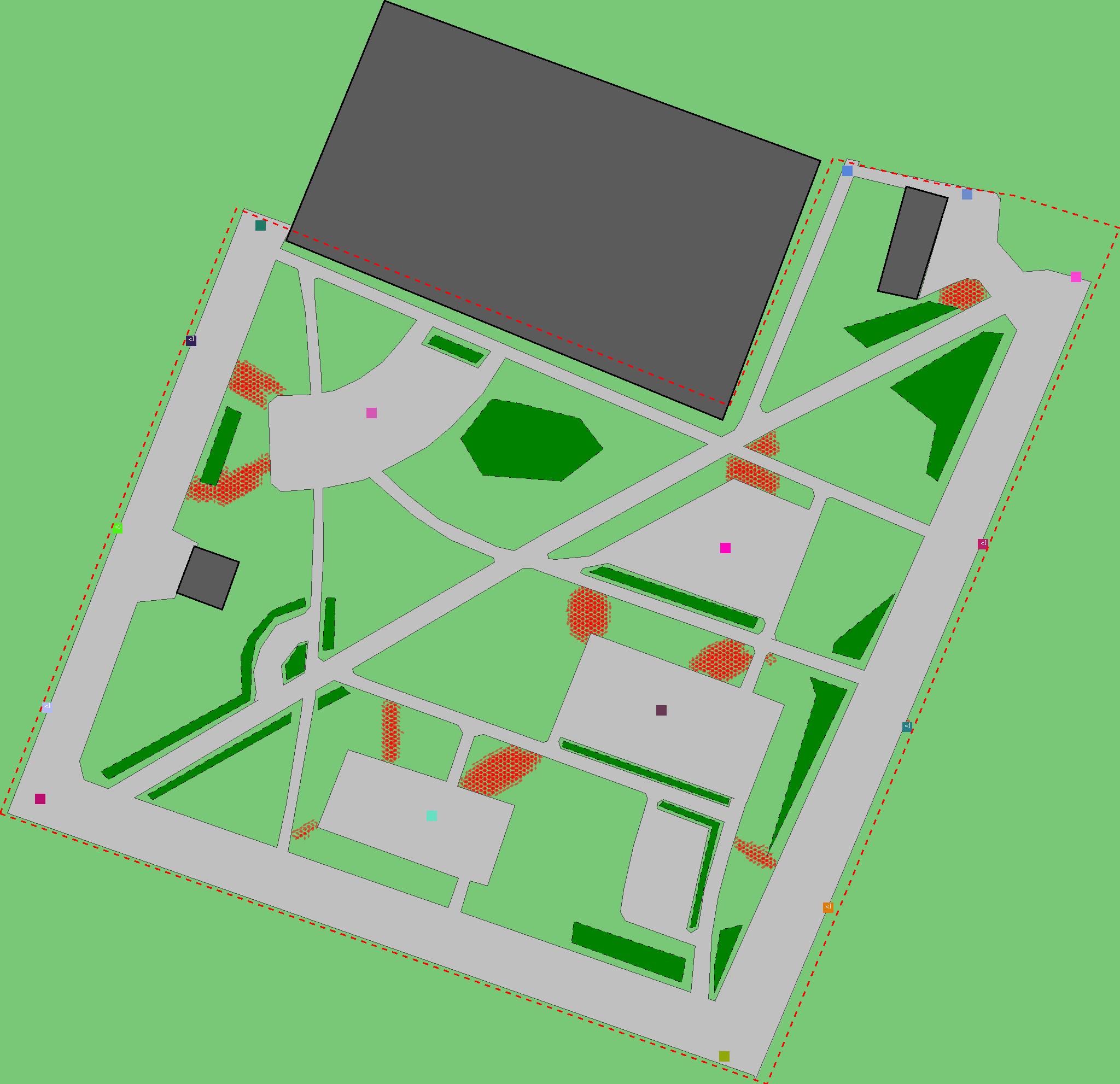 Красным цветом показаны места, где, вероятнее всего, появятся стихийные тропы..