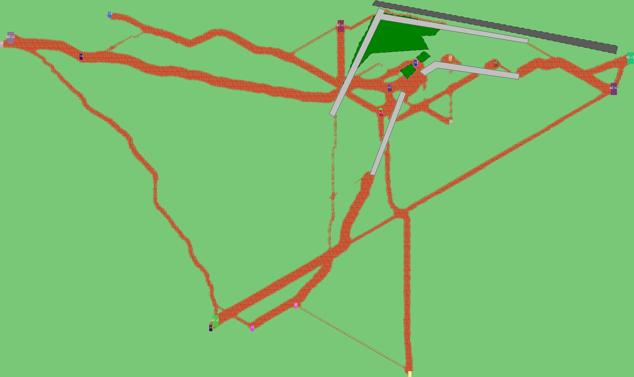 Красным цветом показаны места, где, вероятнее всего, появятся стихийные тропы..