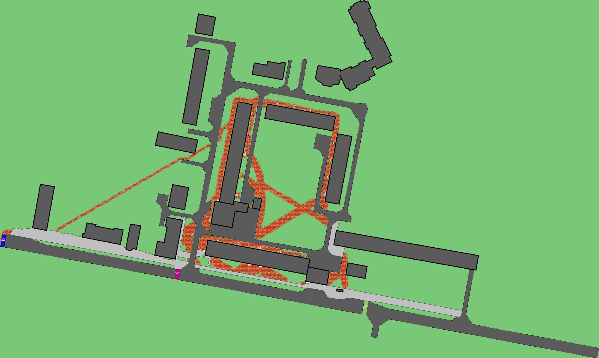 Красным цветом показаны места, где, вероятнее всего, появятся стихийные тропы..