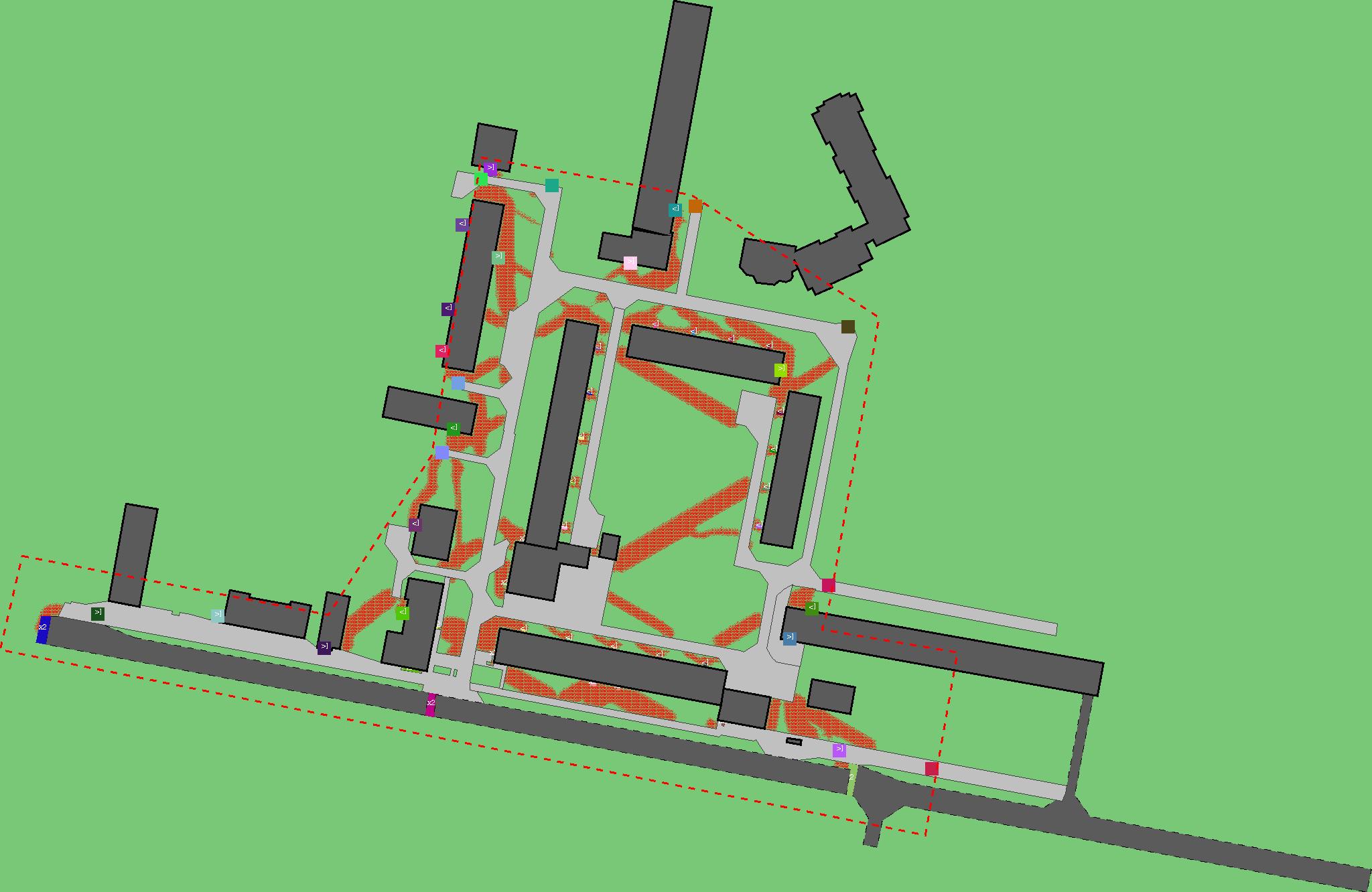 Красным цветом показаны места, где, вероятнее всего, появятся стихийные тропы..