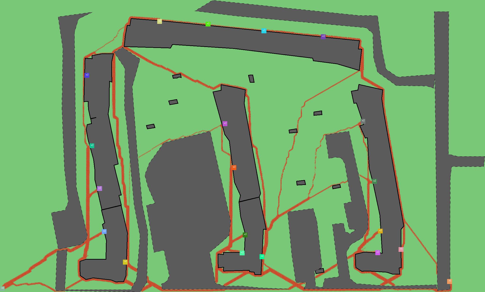 Красным цветом показаны места, где, вероятнее всего, появятся стихийные тропы..