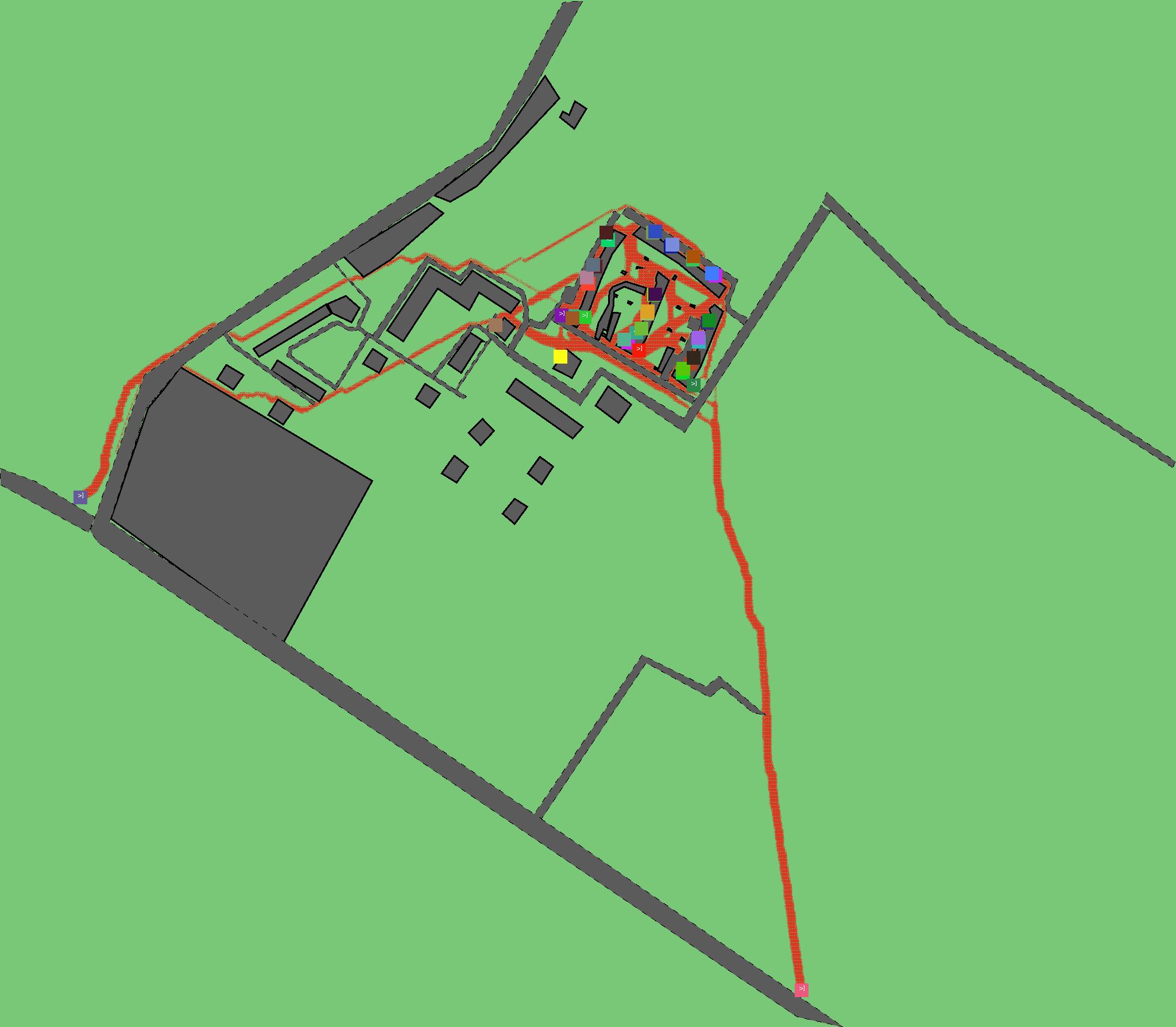 Красным цветом показаны места, где, вероятнее всего, появятся стихийные тропы..