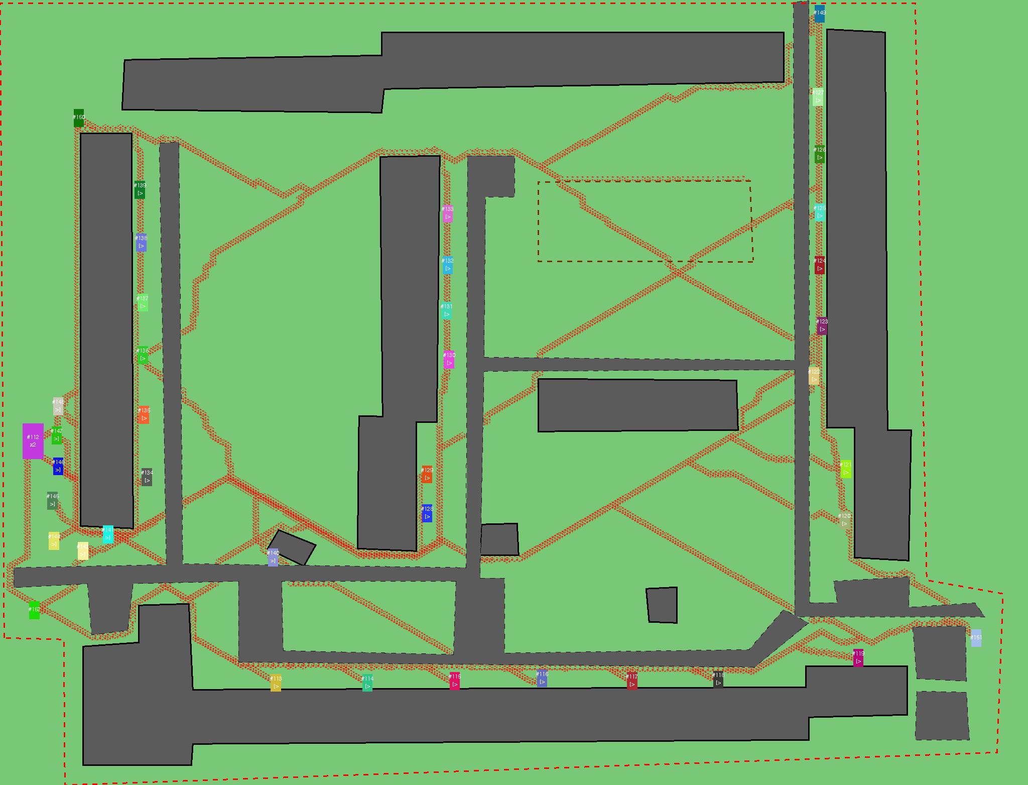 Красным цветом показаны места, где, вероятнее всего, появятся стихийные тропы..