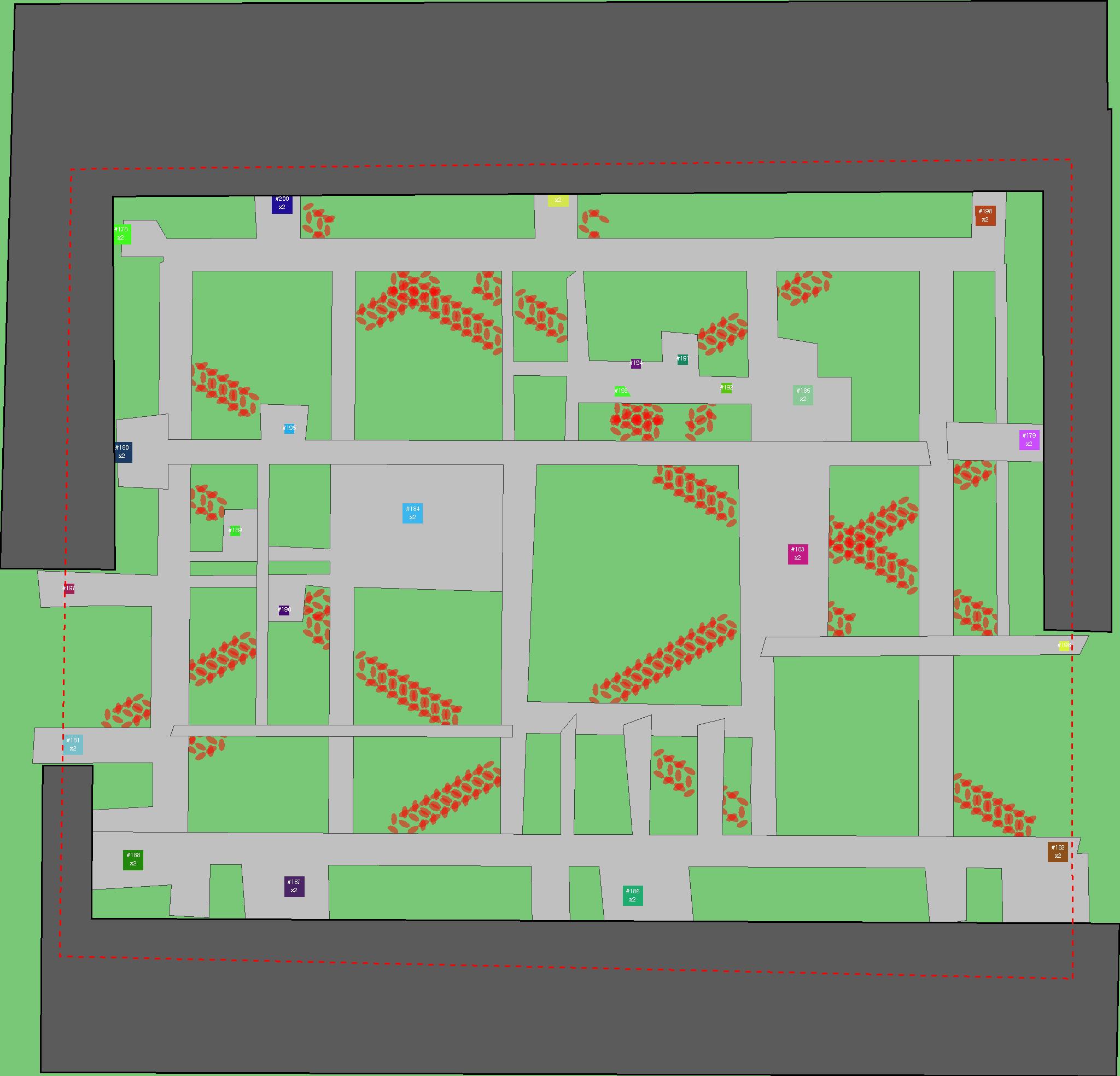 Красным цветом показаны места, где, вероятнее всего, появятся стихийные тропы..