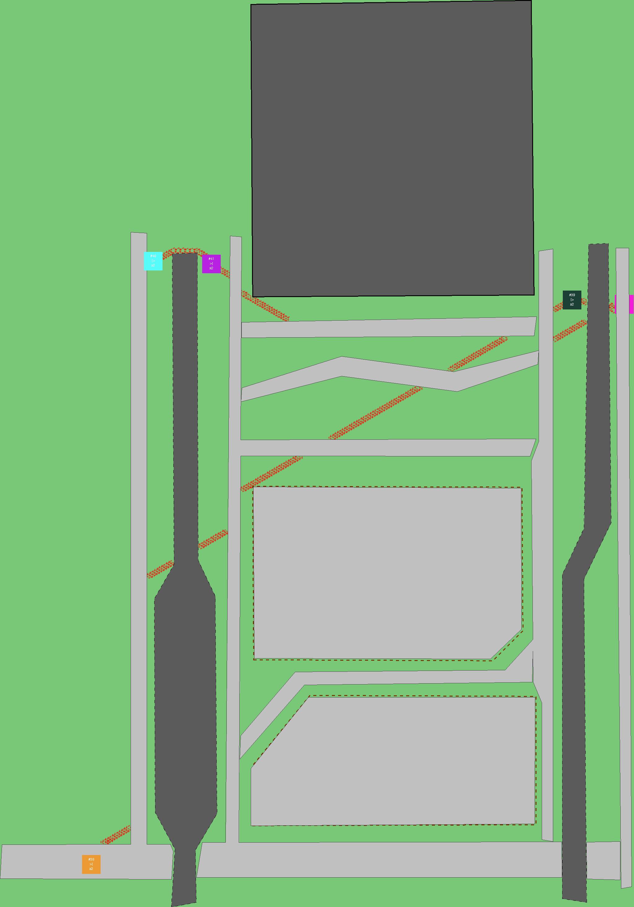 Красным цветом показаны места, где, вероятнее всего, появятся стихийные тропы..