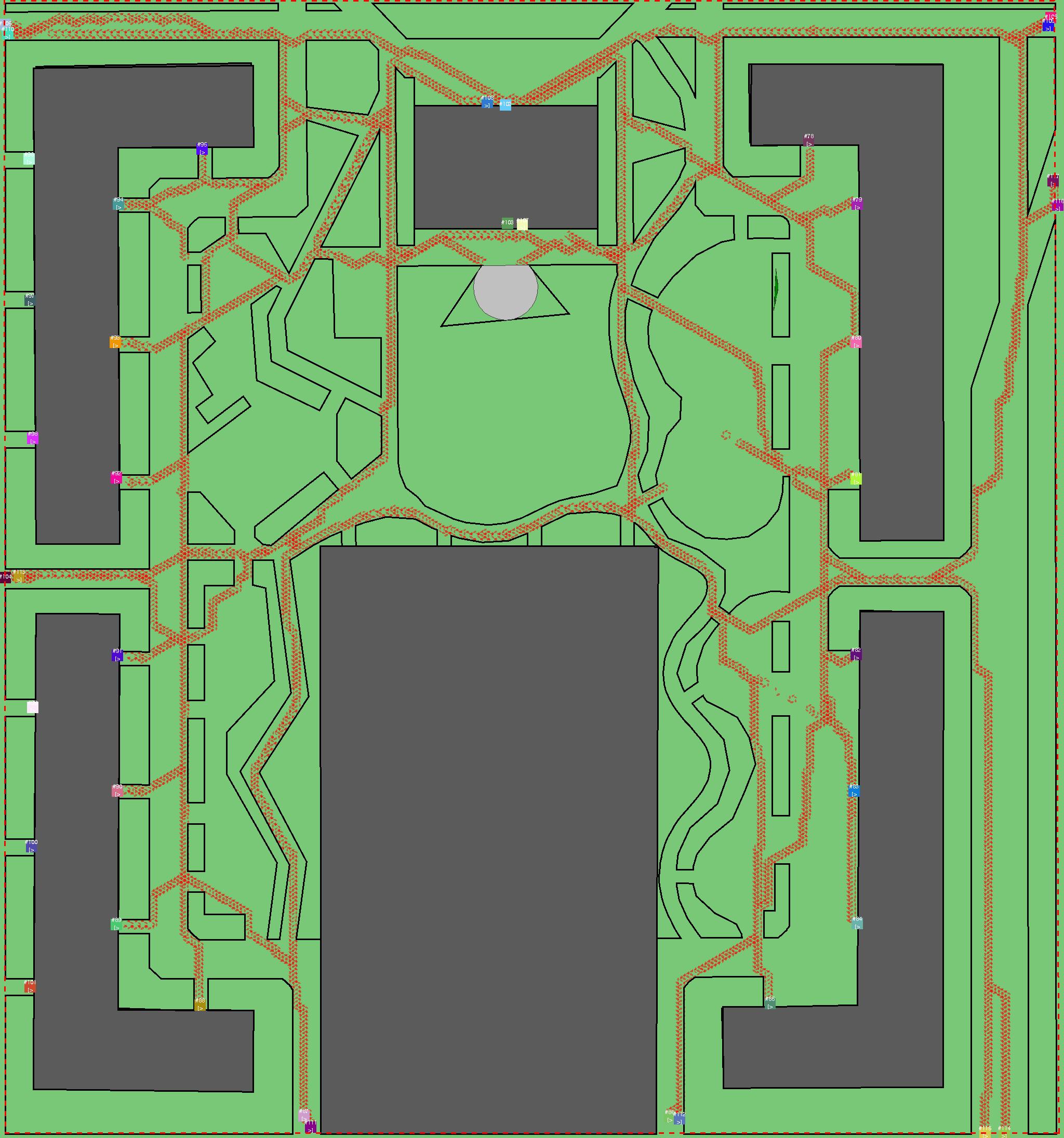 Красным цветом показаны места, где, вероятнее всего, появятся стихийные тропы..