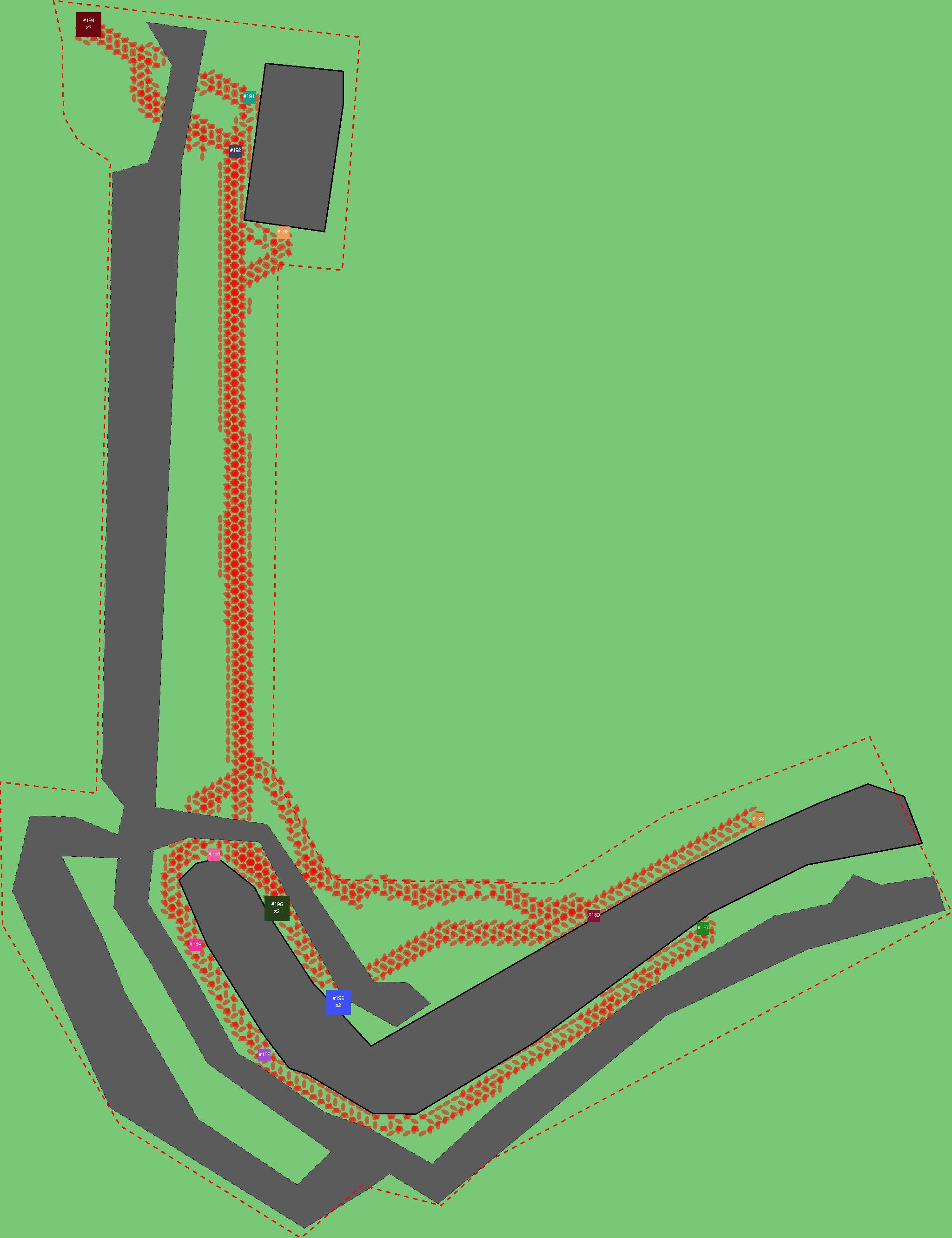 Красным цветом показаны места, где, вероятнее всего, появятся стихийные тропы..