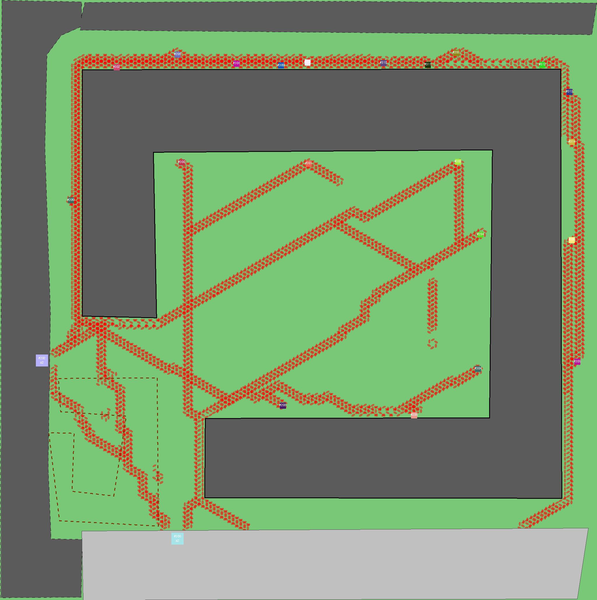Красным цветом показаны места, где, вероятнее всего, появятся стихийные тропы..