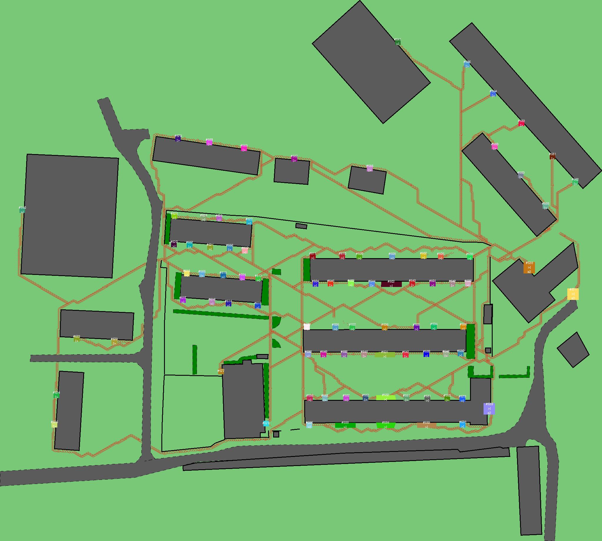 Красным цветом показаны места, где, вероятнее всего, появятся стихийные тропы..