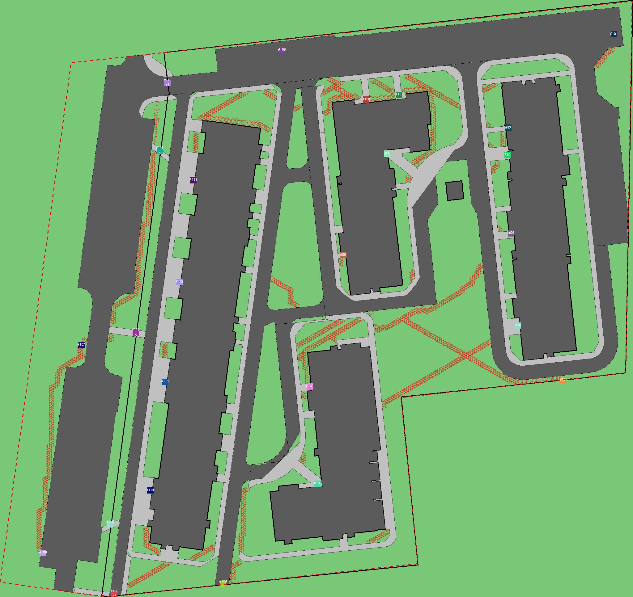 Красным цветом показаны места, где, вероятнее всего, появятся стихийные тропы..