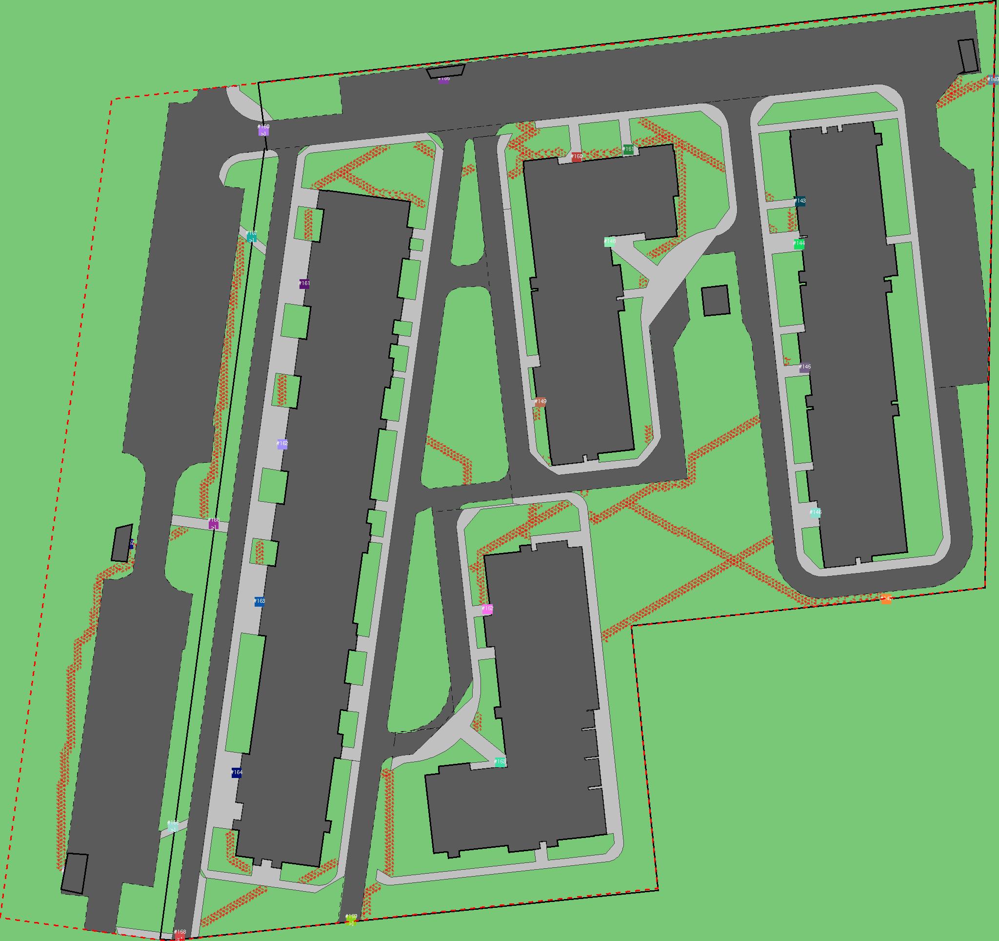Красным цветом показаны места, где, вероятнее всего, появятся стихийные тропы..
