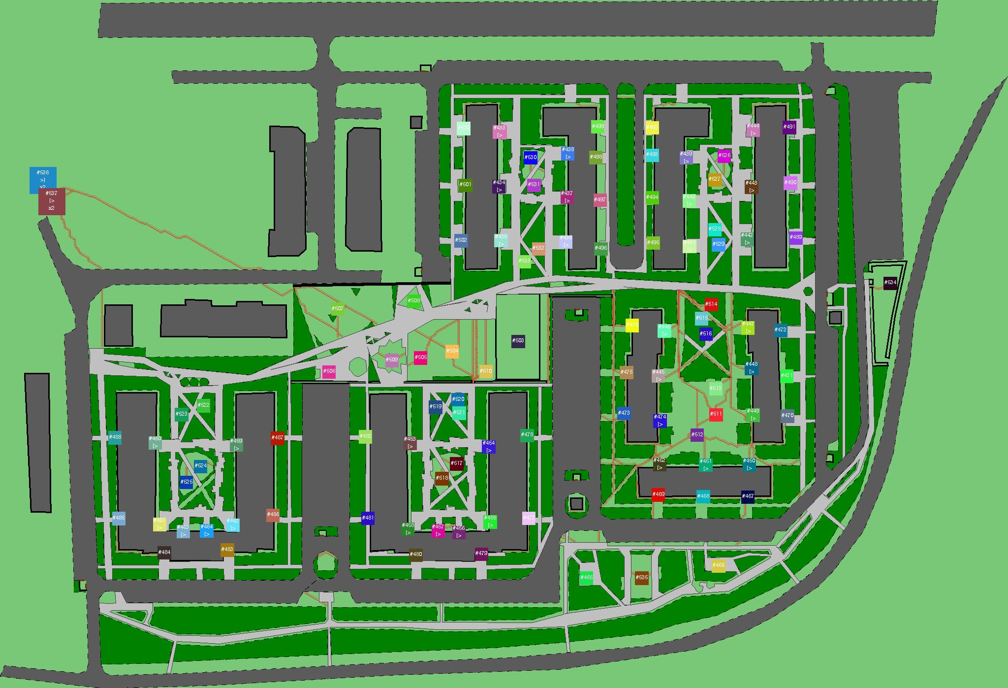 Красным цветом показаны места, где, вероятнее всего, появятся стихийные тропы..
