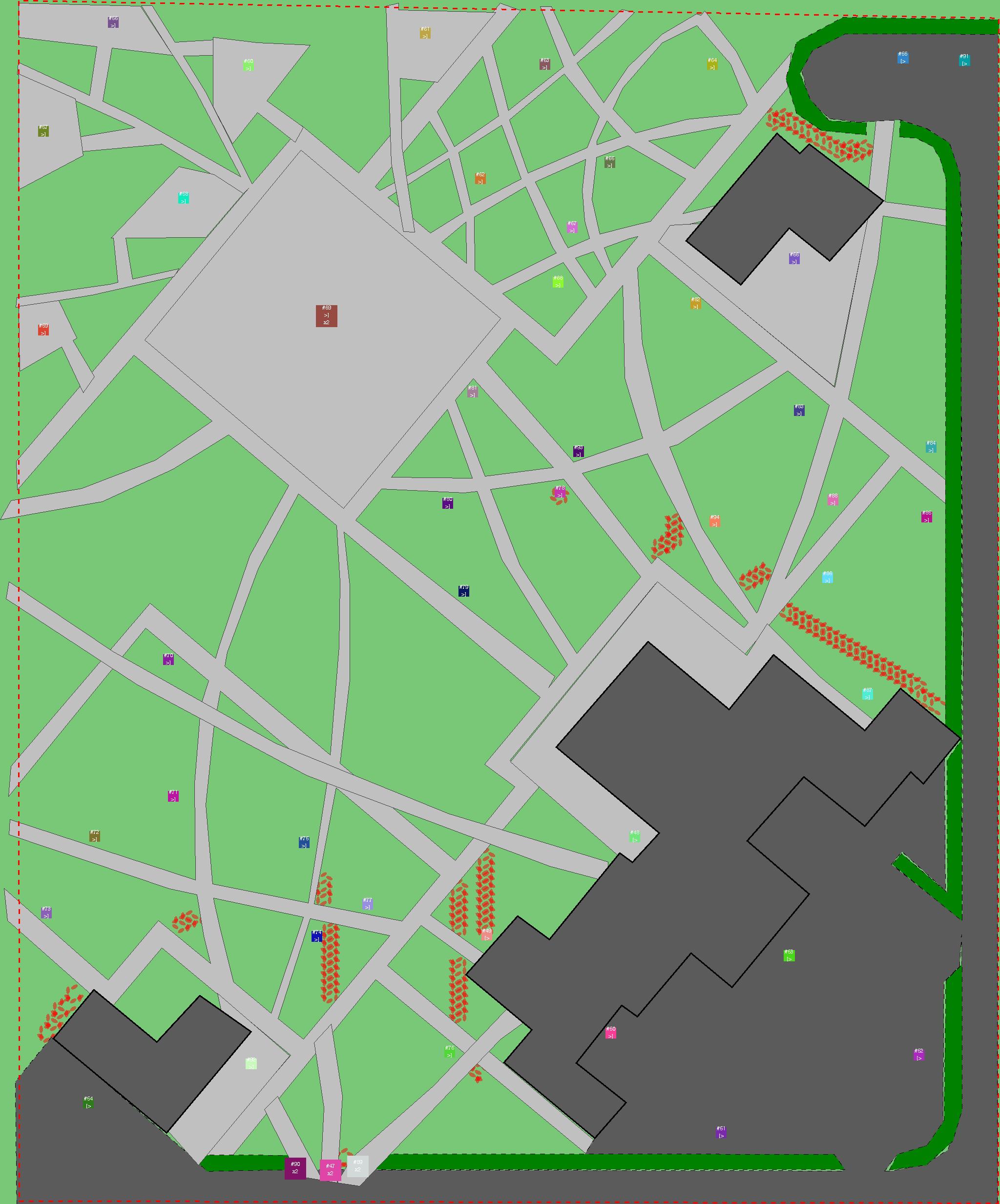 Красным цветом показаны места, где, вероятнее всего, появятся стихийные тропы..