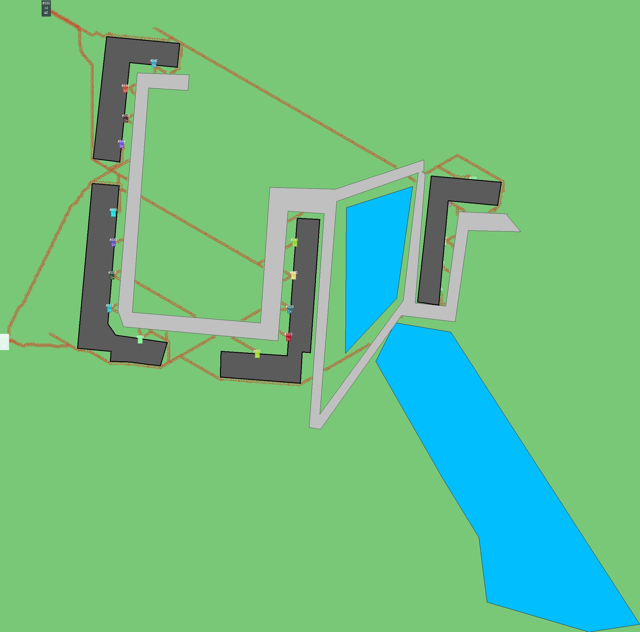 Красным цветом показаны места, где, вероятнее всего, появятся стихийные тропы..