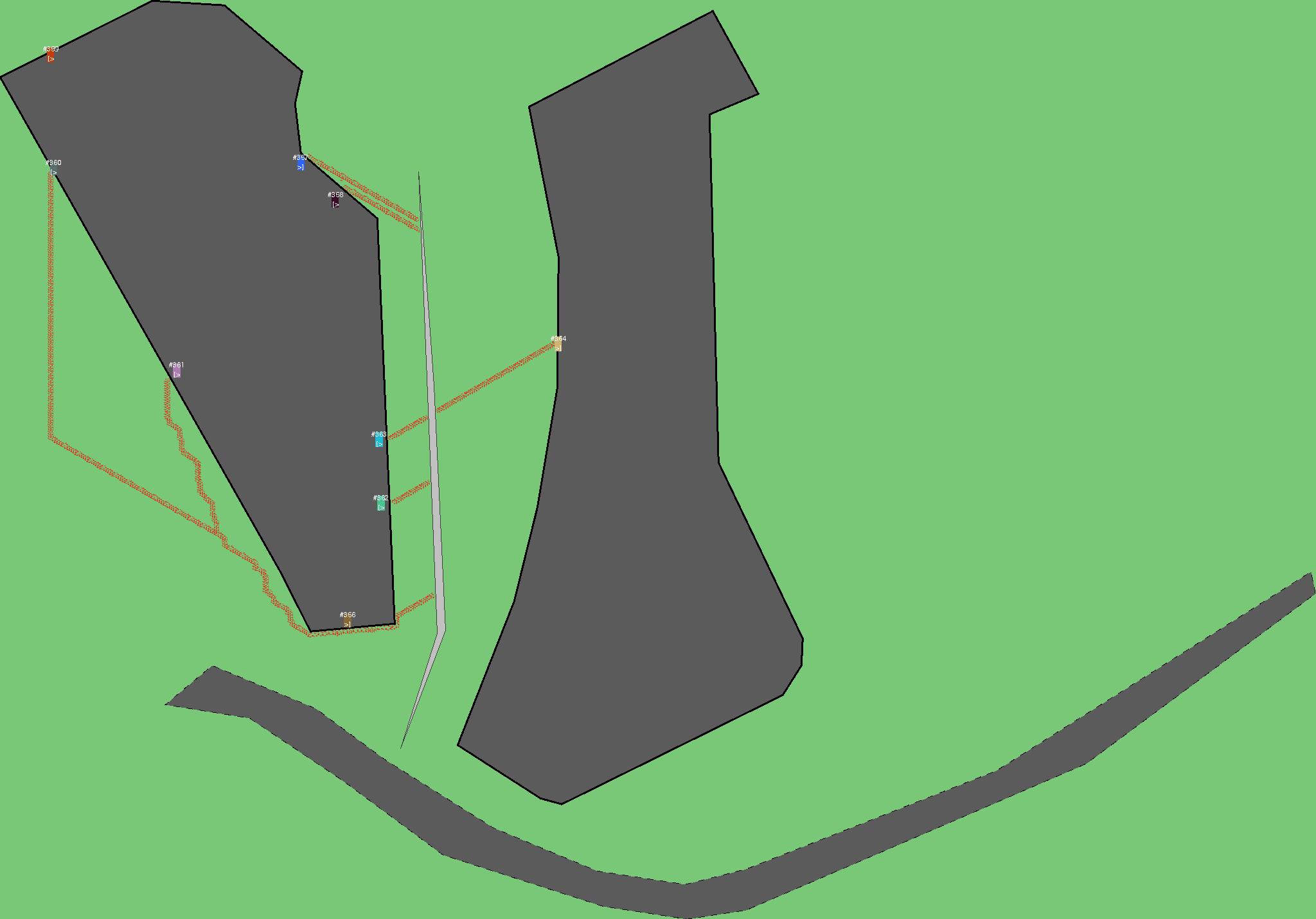 Красным цветом показаны места, где, вероятнее всего, появятся стихийные тропы..