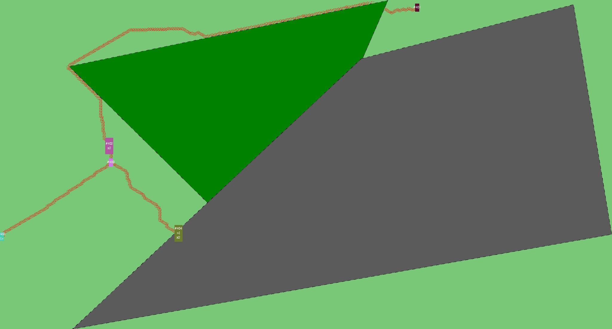 Красным цветом показаны места, где, вероятнее всего, появятся стихийные тропы..