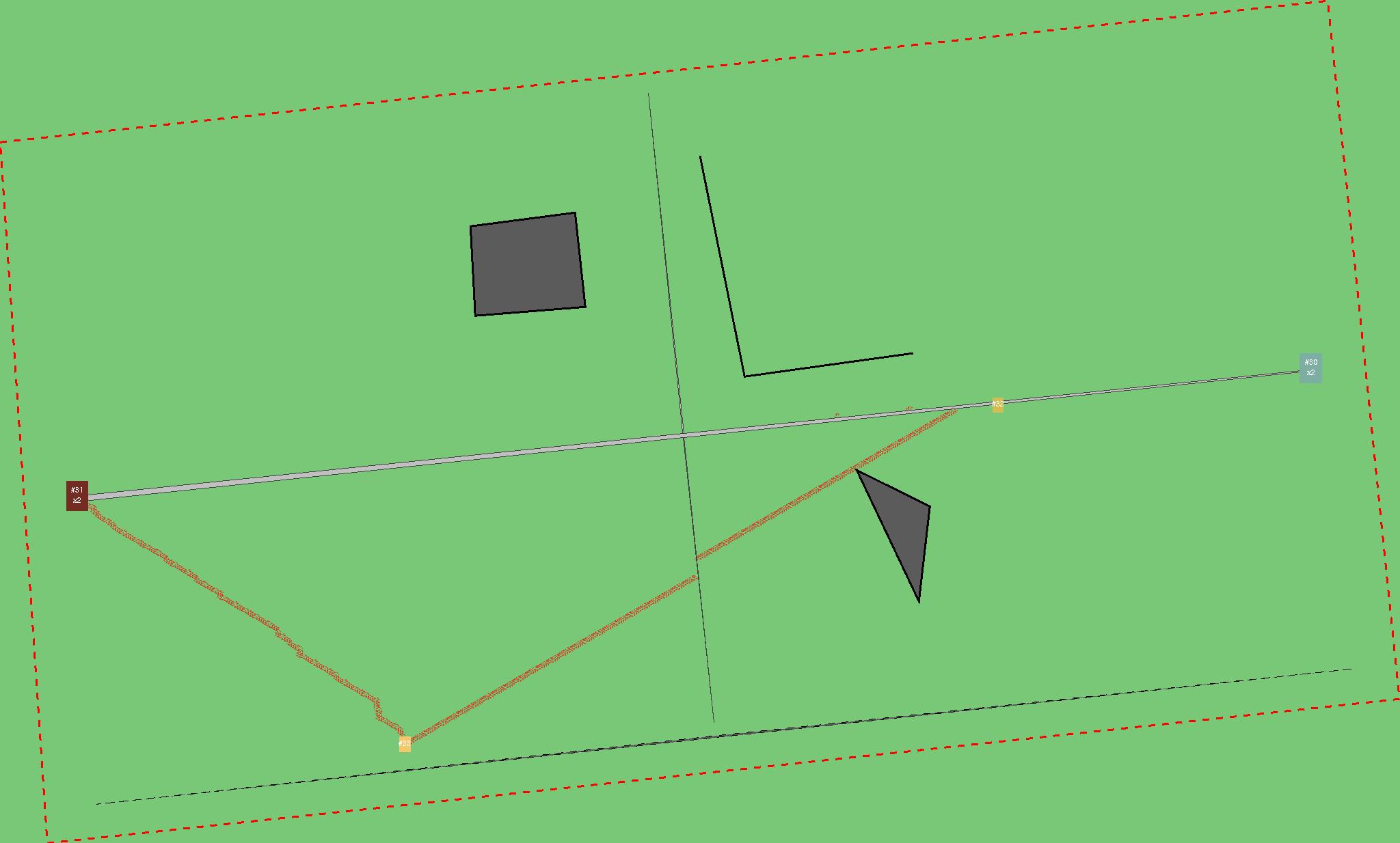 Красным цветом показаны места, где, вероятнее всего, появятся стихийные тропы..