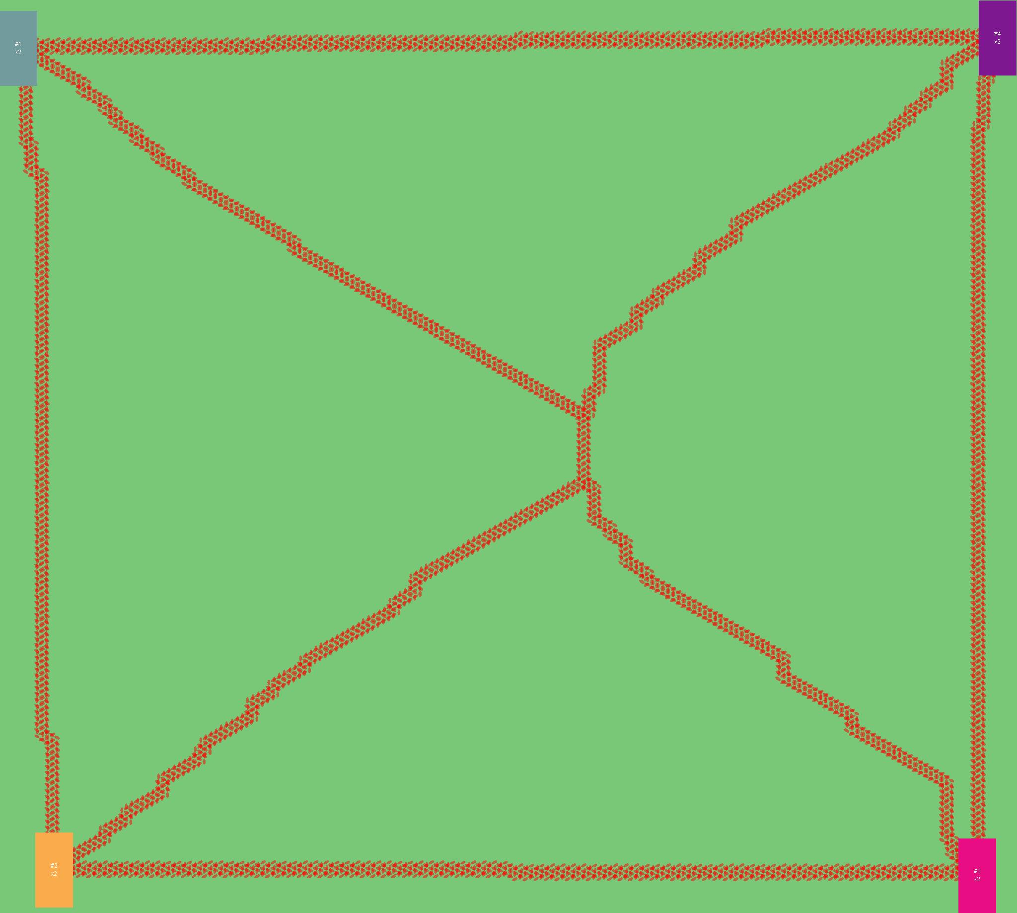 Красным цветом показаны места, где, вероятнее всего, появятся стихийные тропы..