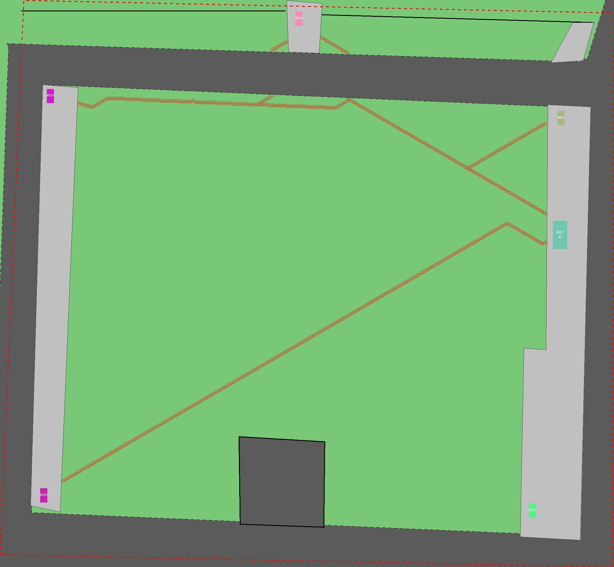 Красным цветом показаны места, где, вероятнее всего, появятся стихийные тропы..