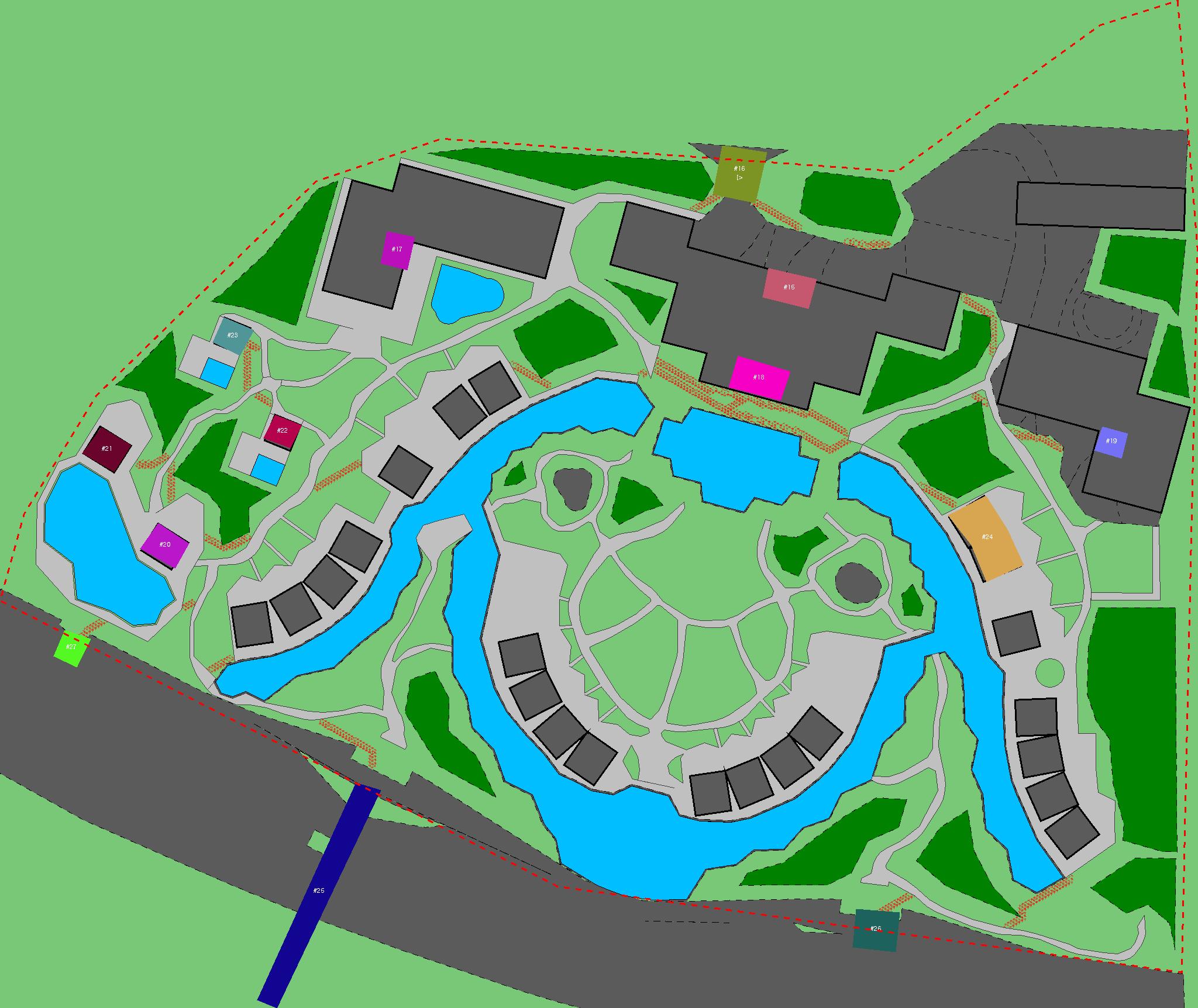 Красным цветом показаны места, где, вероятнее всего, появятся стихийные тропы..