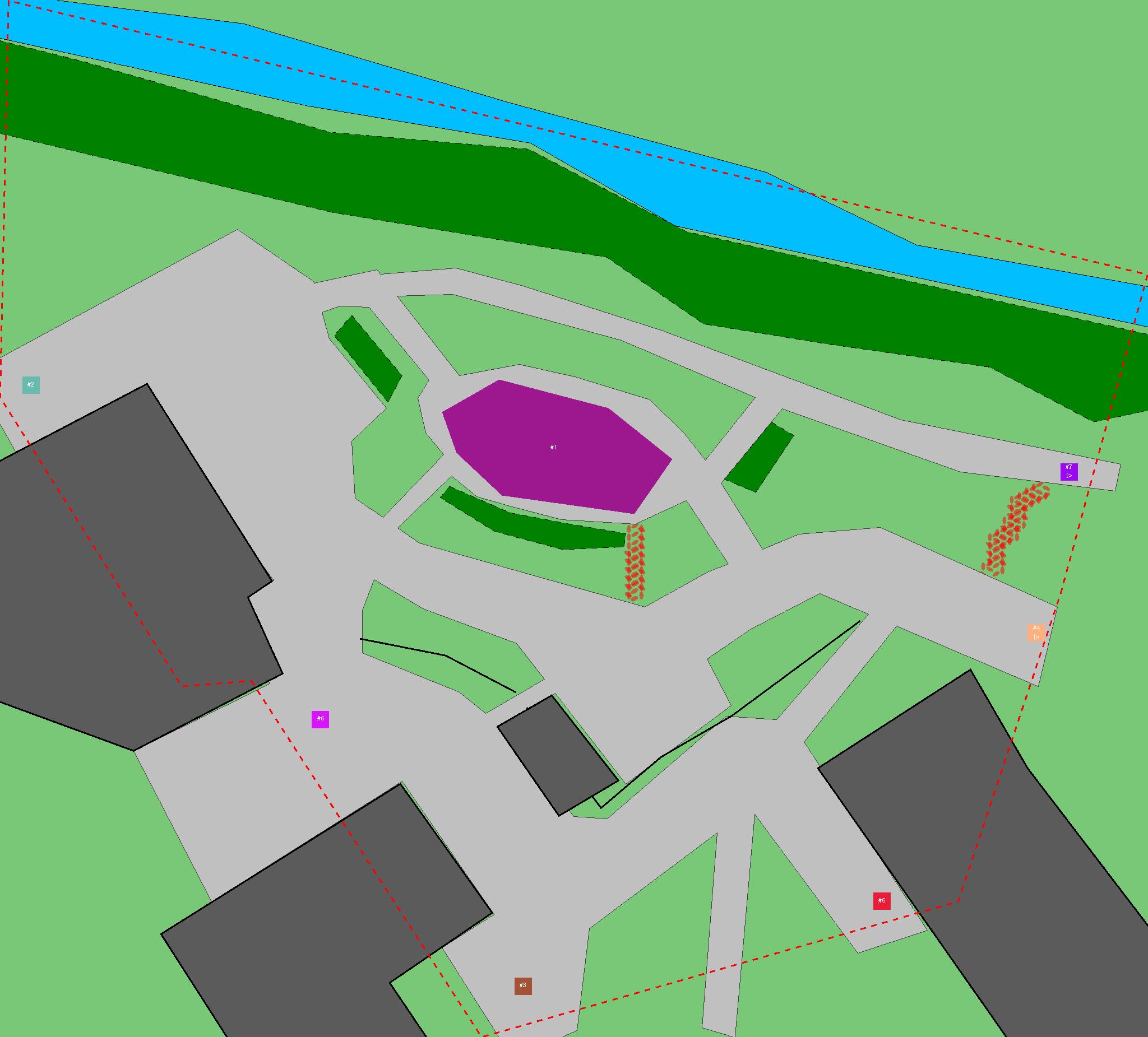 Красным цветом показаны места, где, вероятнее всего, появятся стихийные тропы..