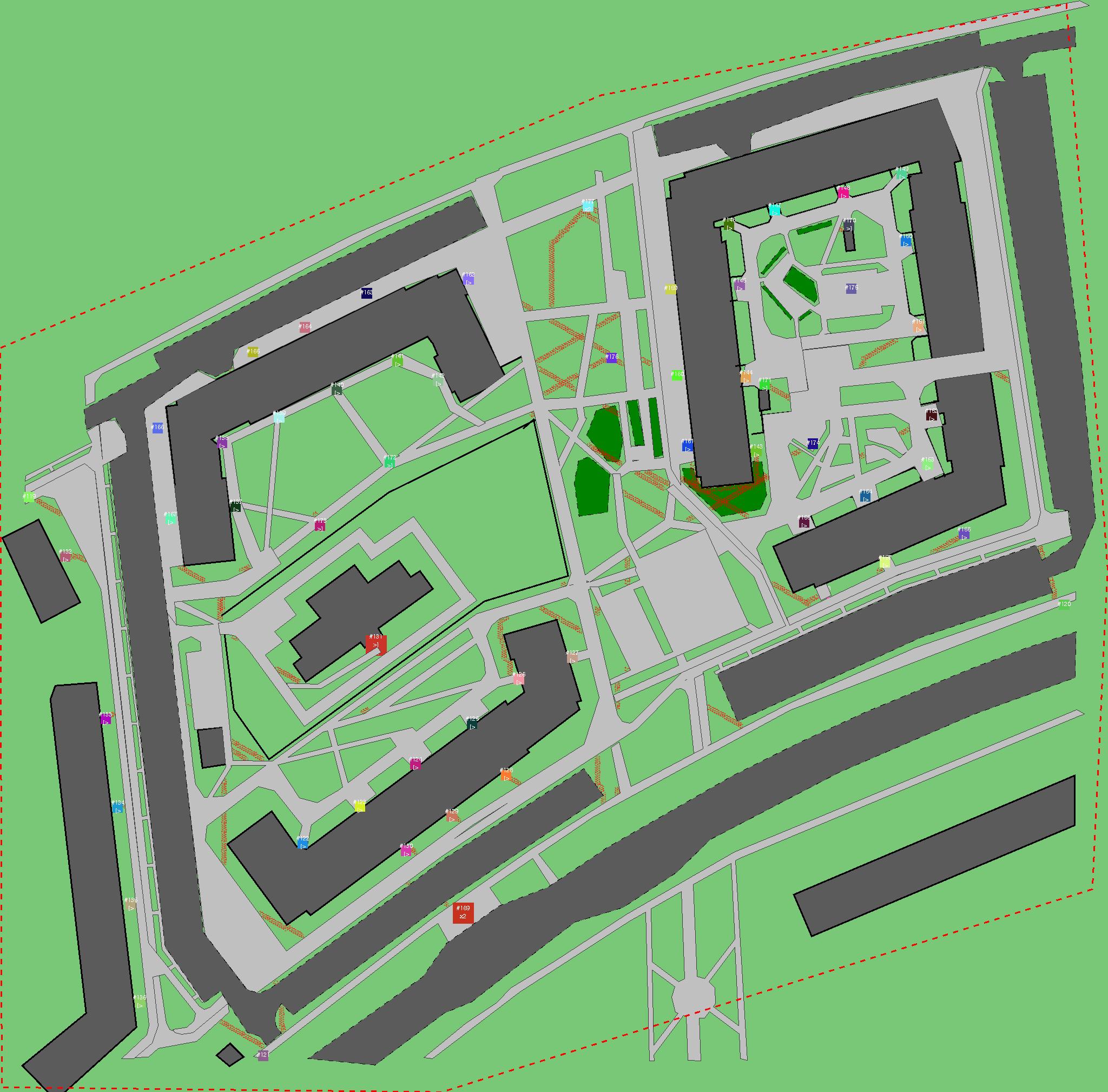 Красным цветом показаны места, где, вероятнее всего, появятся стихийные тропы..