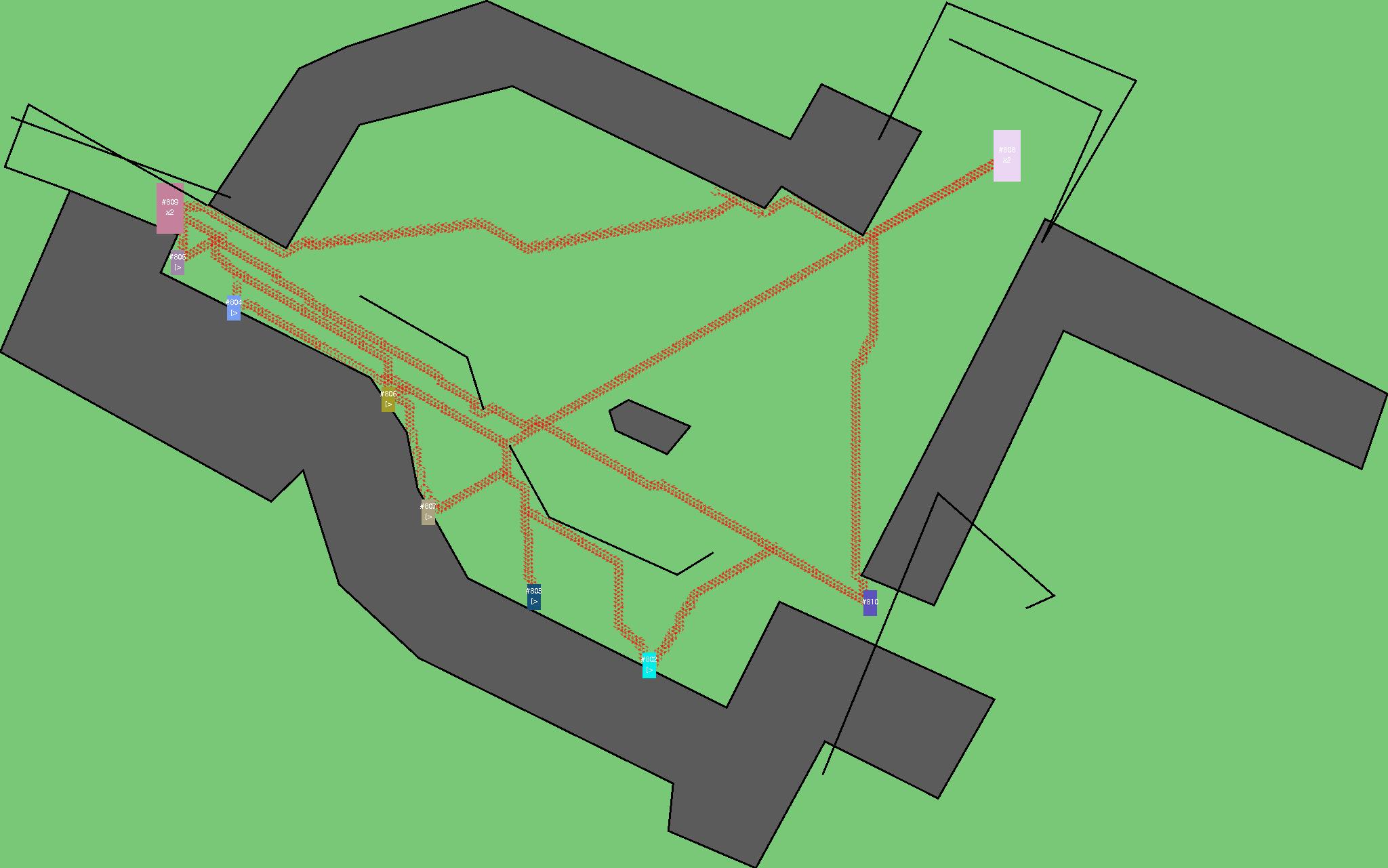 Красным цветом показаны места, где, вероятнее всего, появятся стихийные тропы..