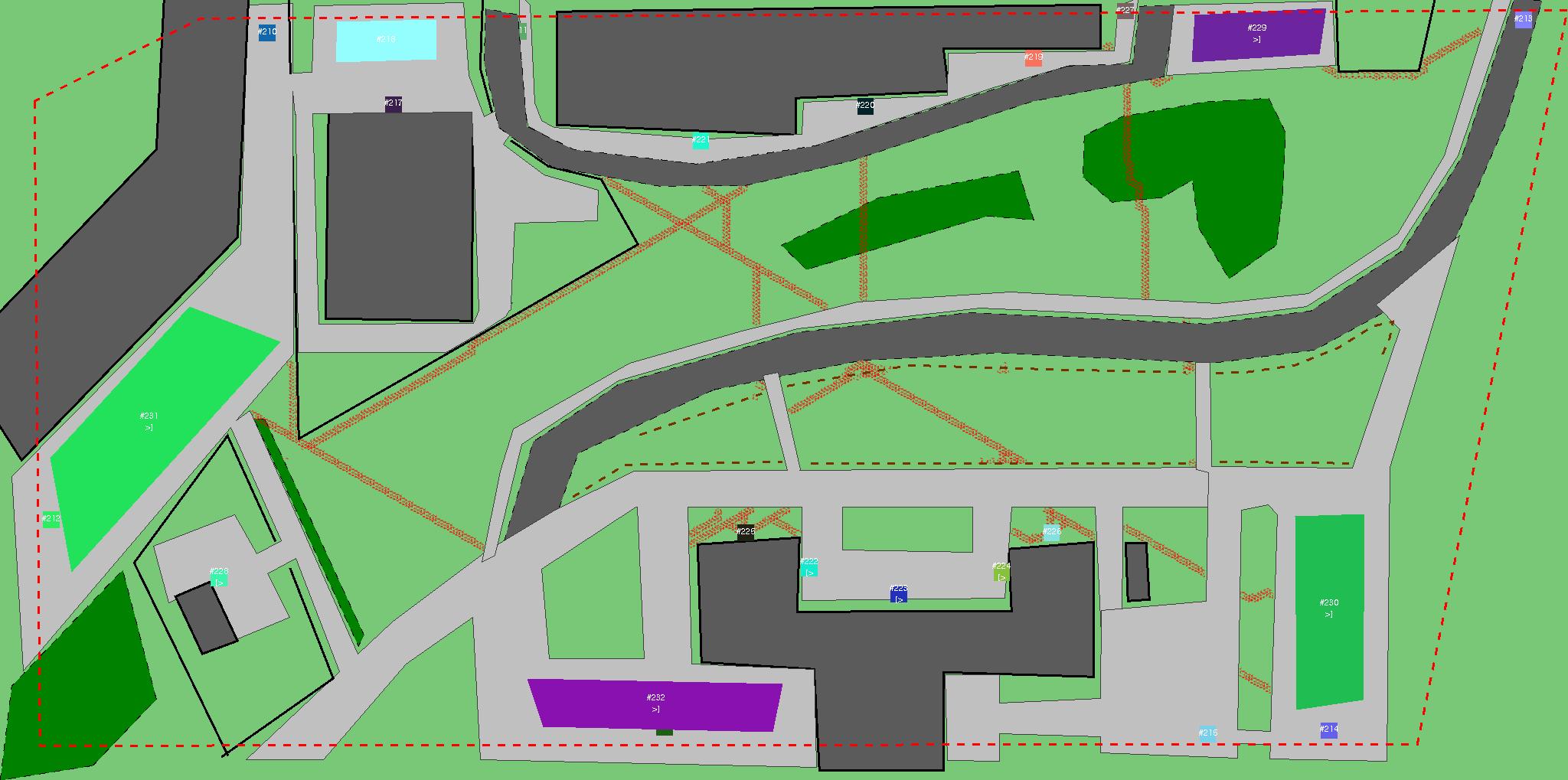Красным цветом показаны места, где, вероятнее всего, появятся стихийные тропы..