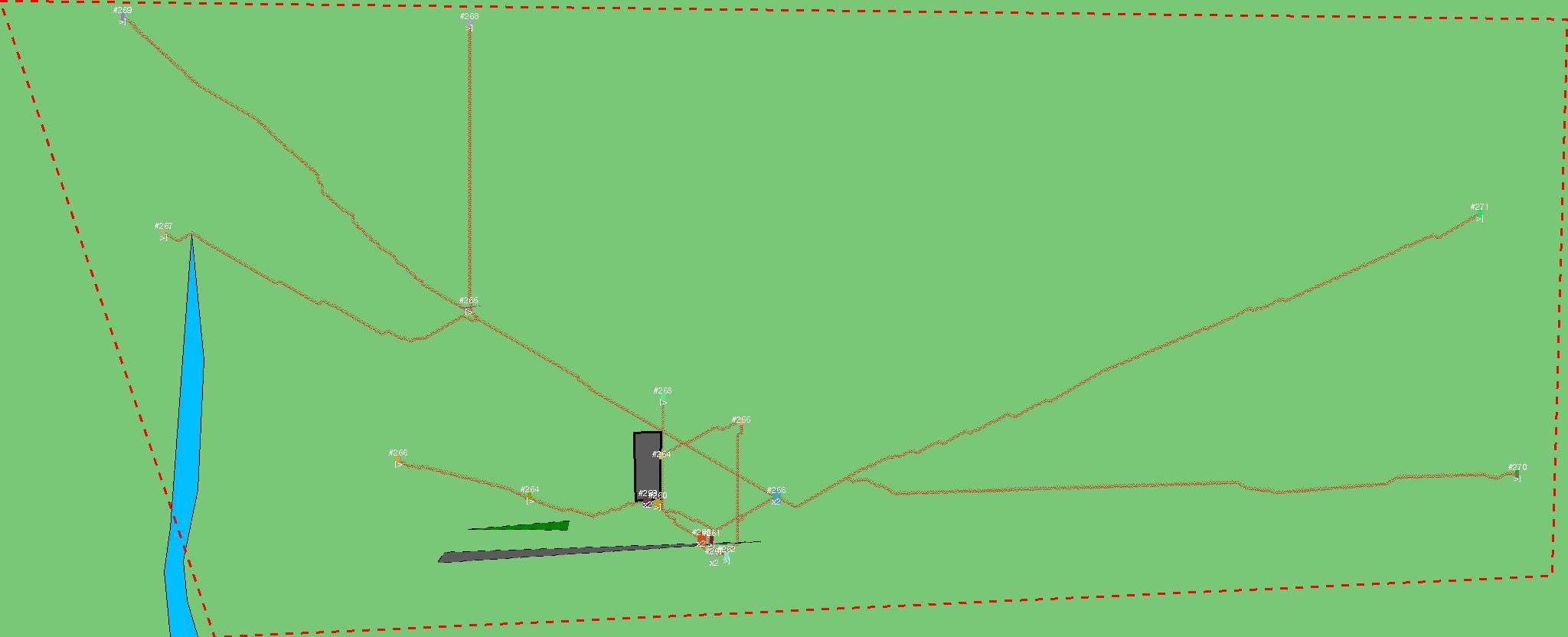 Красным цветом показаны места, где, вероятнее всего, появятся стихийные тропы..