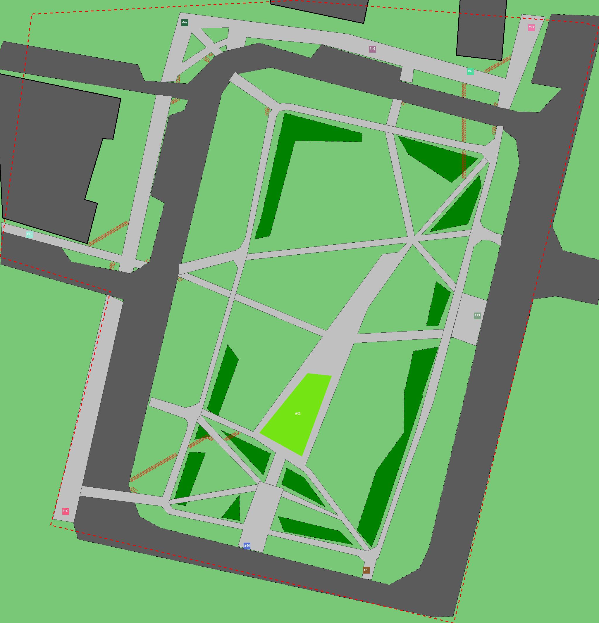 Красным цветом показаны места, где, вероятнее всего, появятся стихийные тропы..