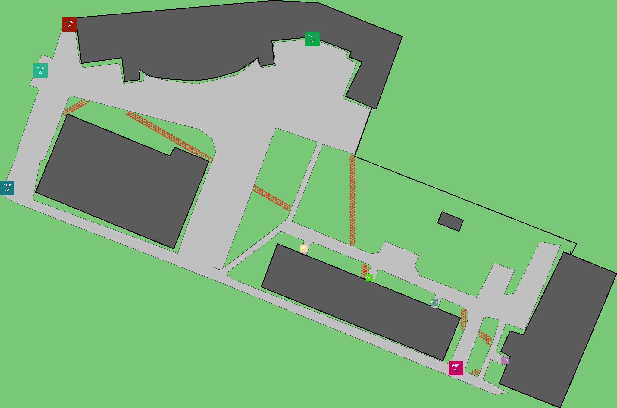 Красным цветом показаны места, где, вероятнее всего, появятся стихийные тропы..