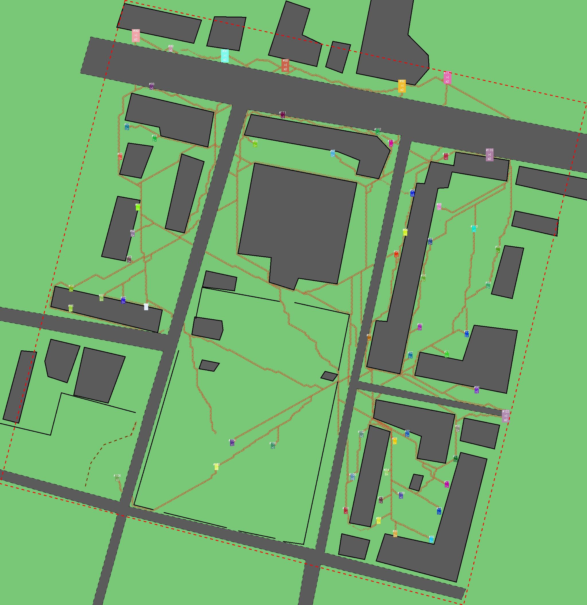 Красным цветом показаны места, где, вероятнее всего, появятся стихийные тропы..