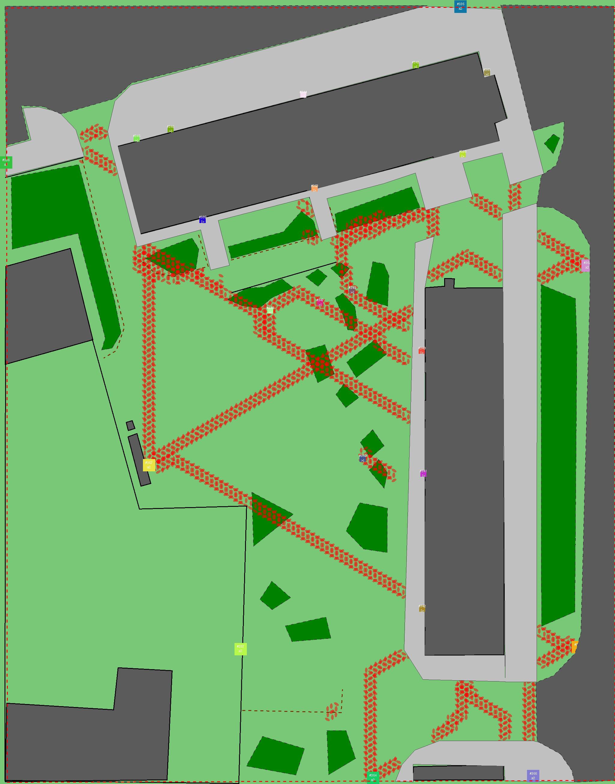 Красным цветом показаны места, где, вероятнее всего, появятся стихийные тропы..