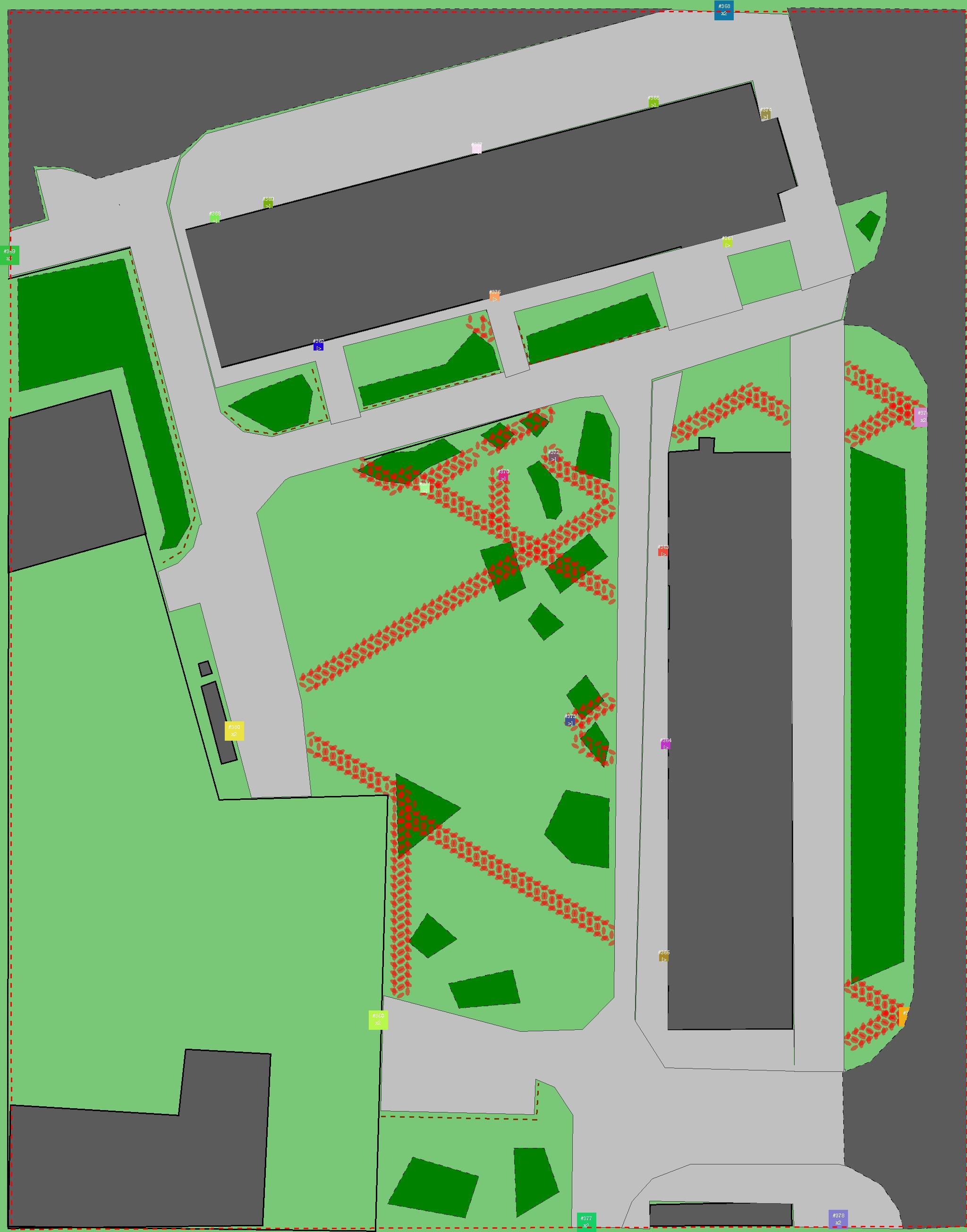Красным цветом показаны места, где, вероятнее всего, появятся стихийные тропы..