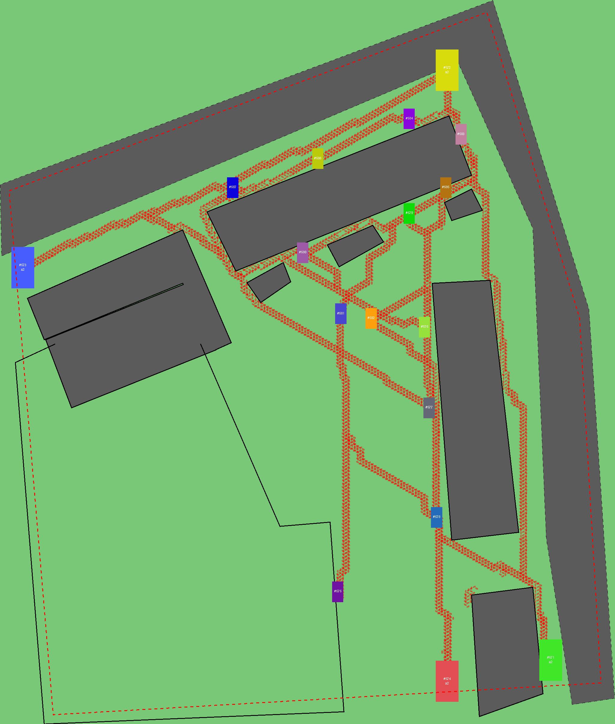 Красным цветом показаны места, где, вероятнее всего, появятся стихийные тропы..