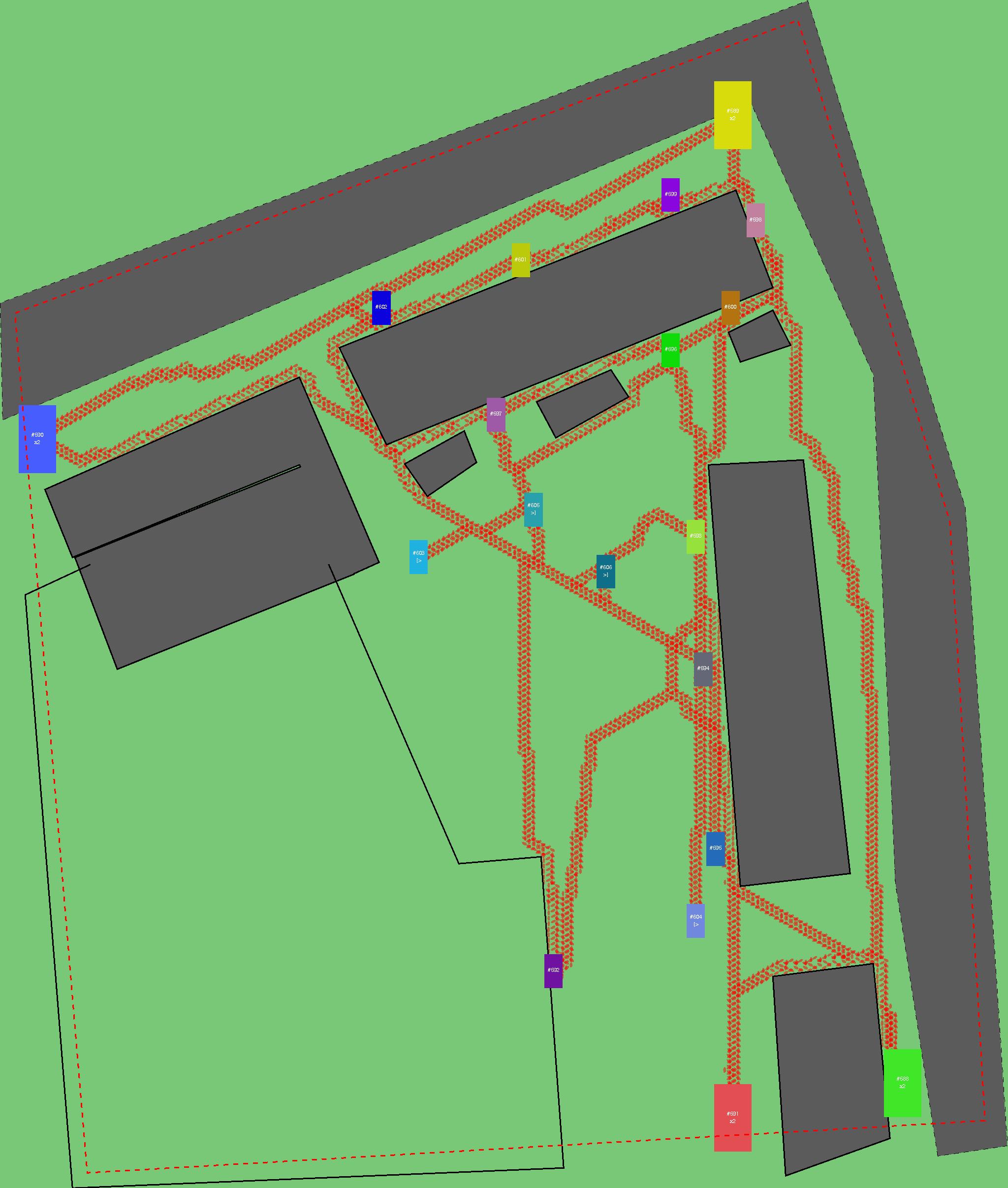 Красным цветом показаны места, где, вероятнее всего, появятся стихийные тропы..