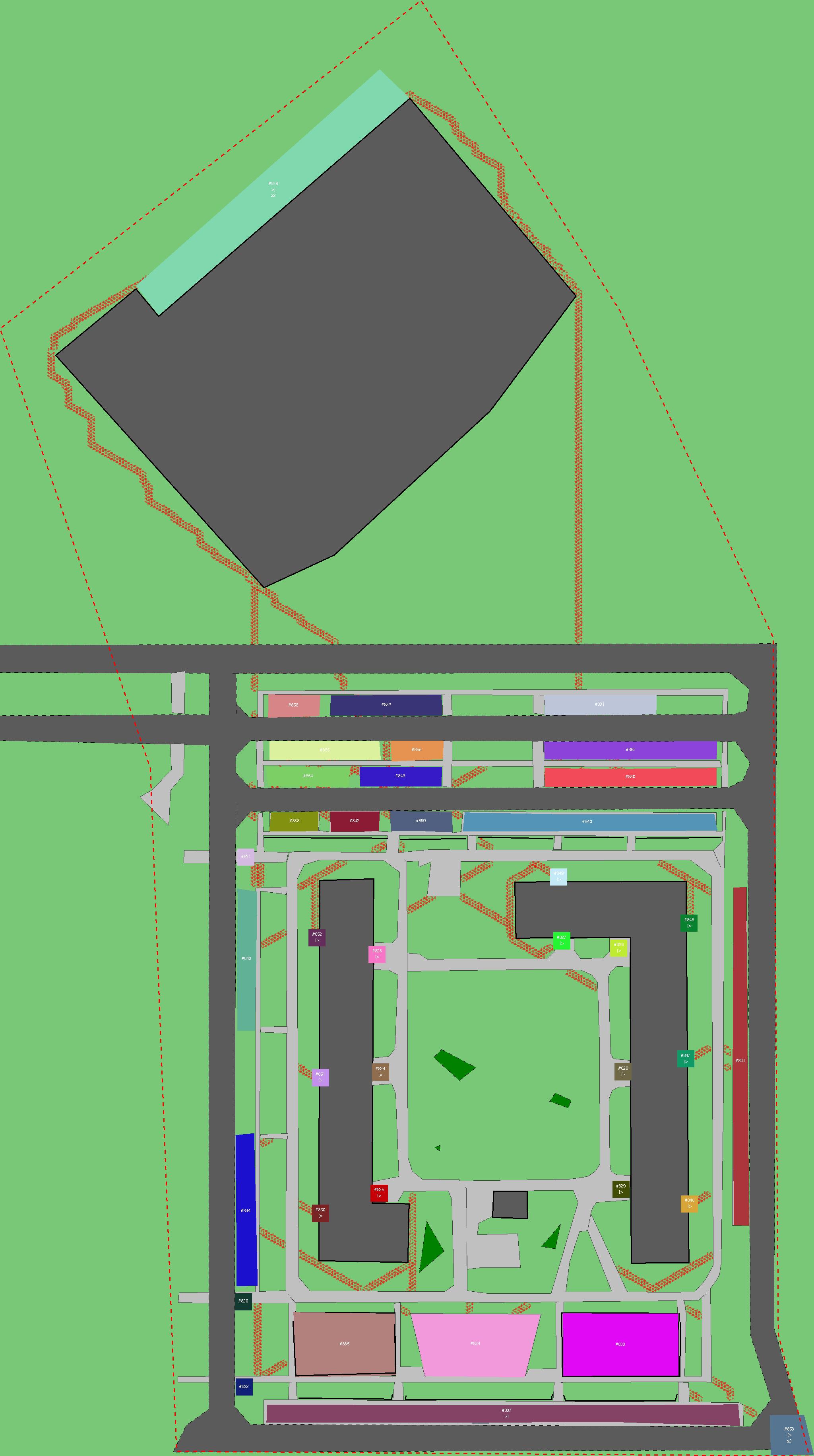 Красным цветом показаны места, где, вероятнее всего, появятся стихийные тропы..