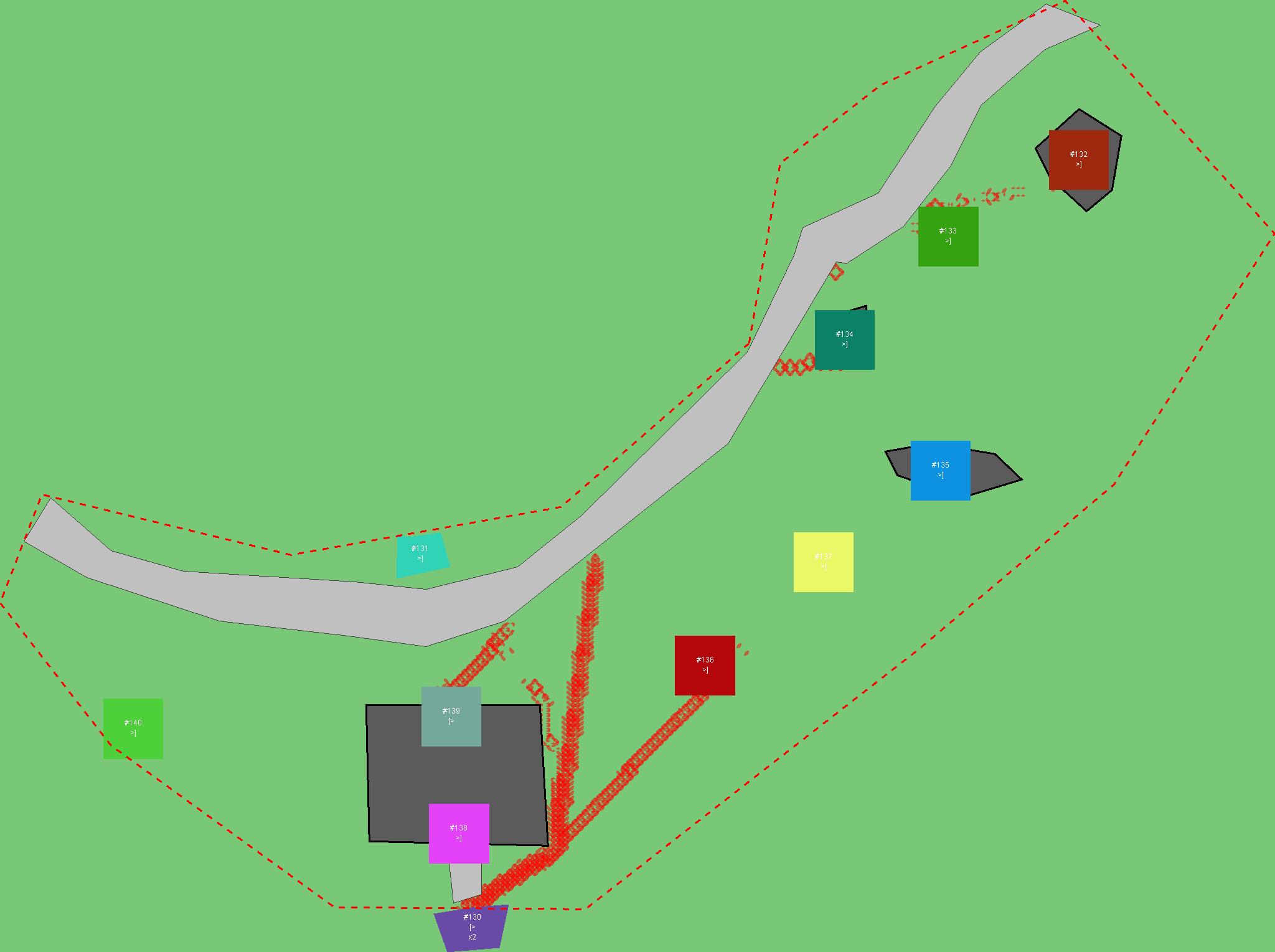 Красным цветом показаны места, где, вероятнее всего, появятся стихийные тропы..