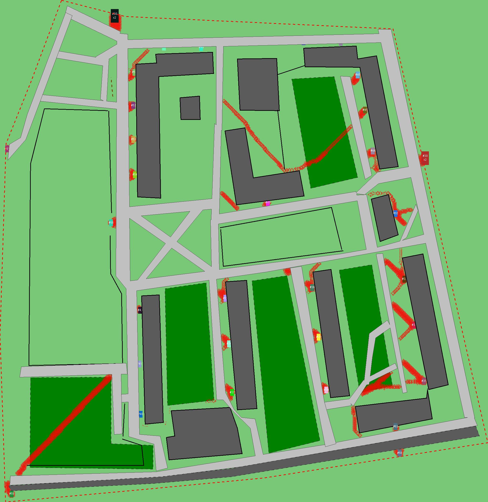 Красным цветом показаны места, где, вероятнее всего, появятся стихийные тропы..