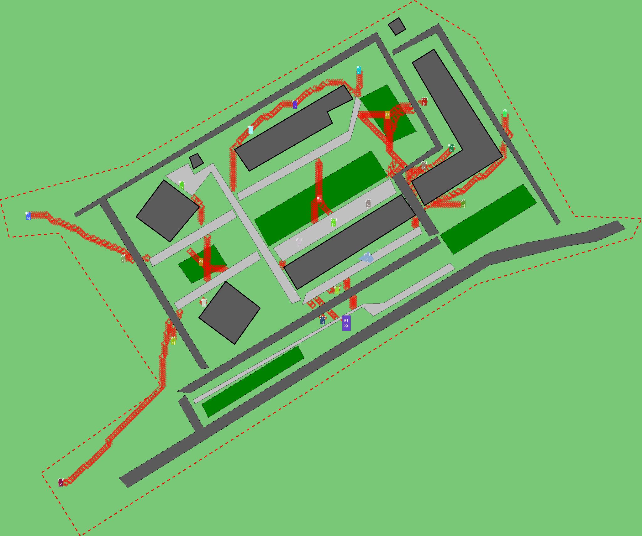 Красным цветом показаны места, где, вероятнее всего, появятся стихийные тропы..