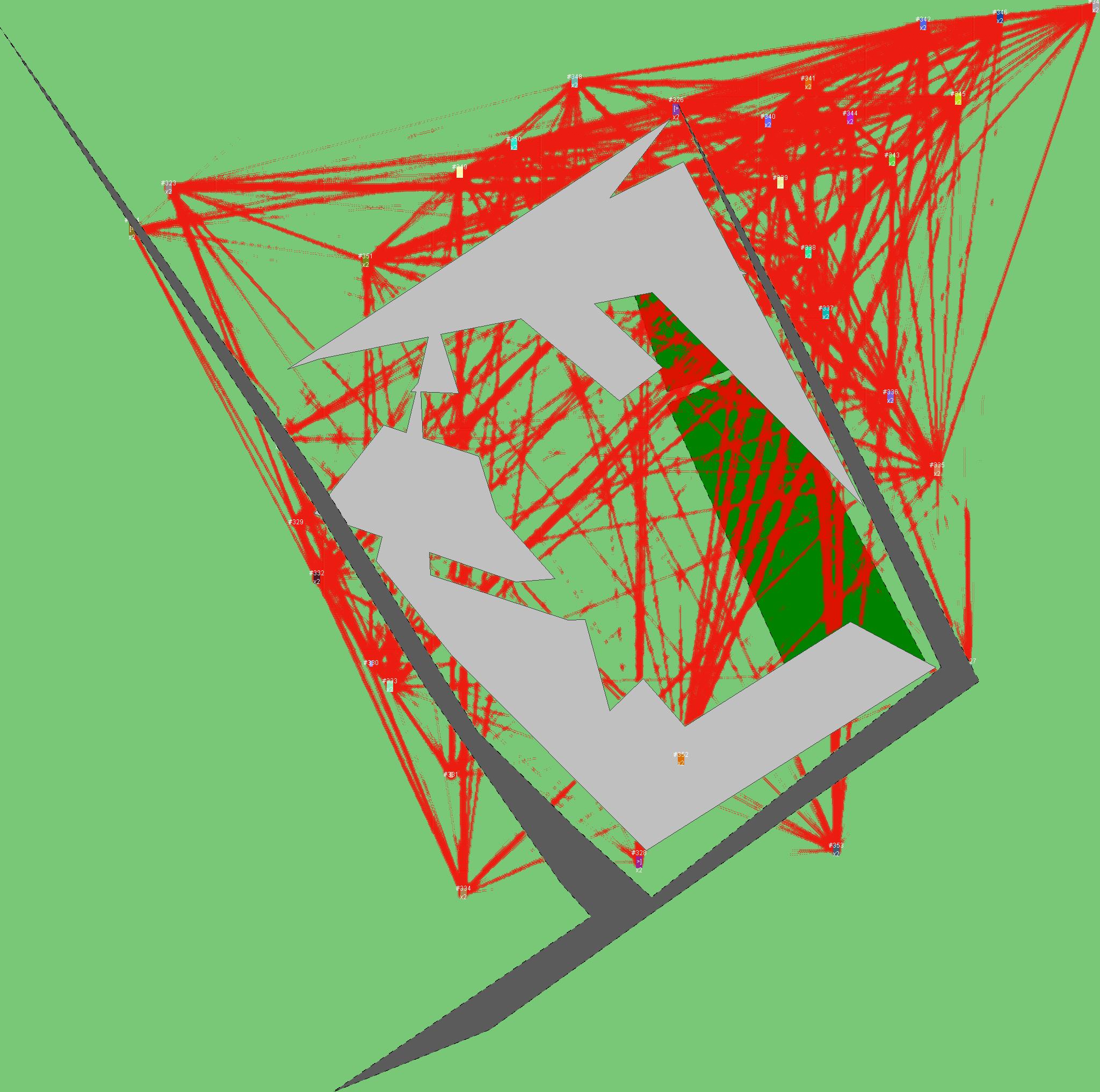 Красным цветом показаны места, где, вероятнее всего, появятся стихийные тропы..