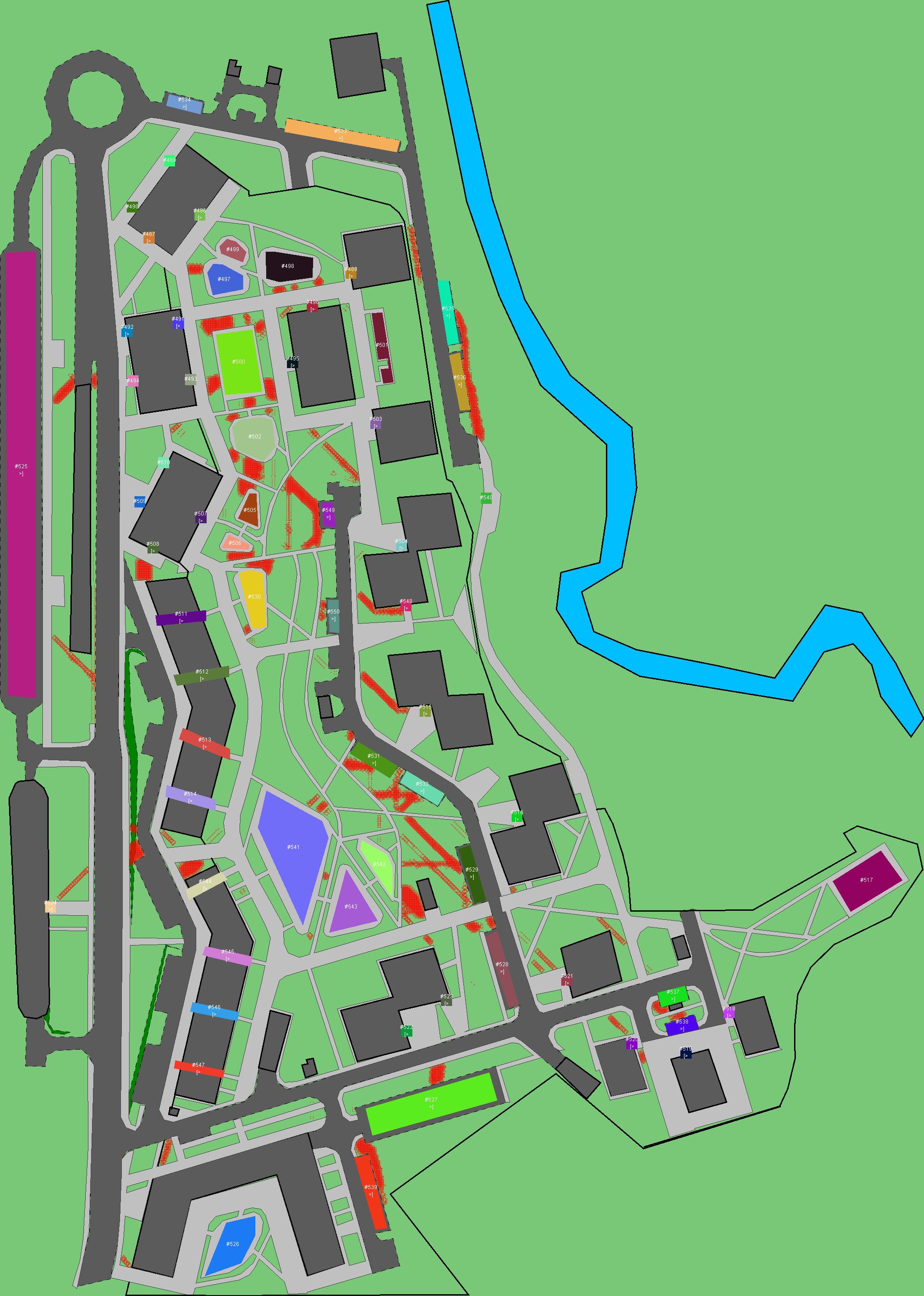 Красным цветом показаны места, где, вероятнее всего, появятся стихийные тропы..