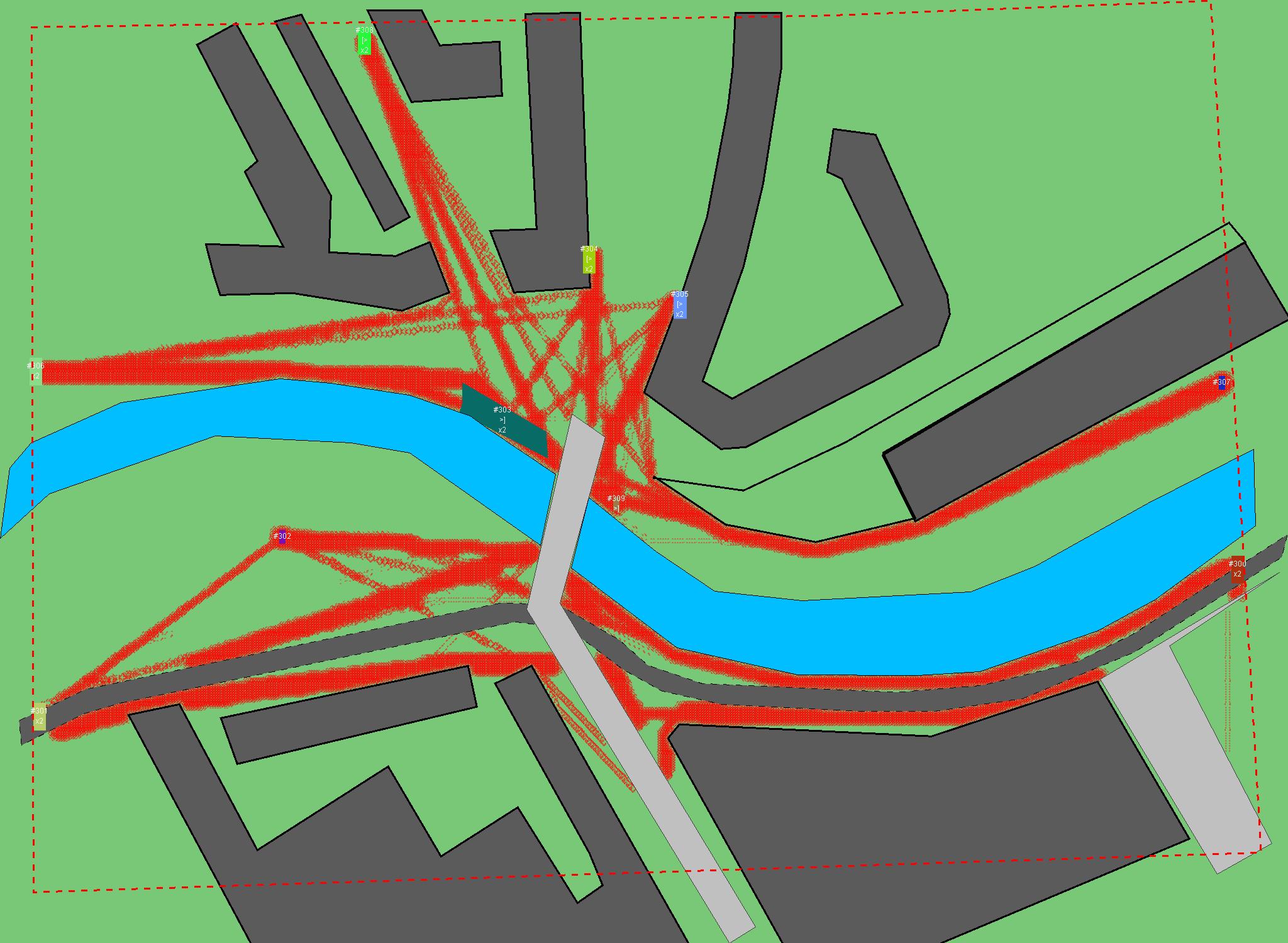 Красным цветом показаны места, где, вероятнее всего, появятся стихийные тропы..
