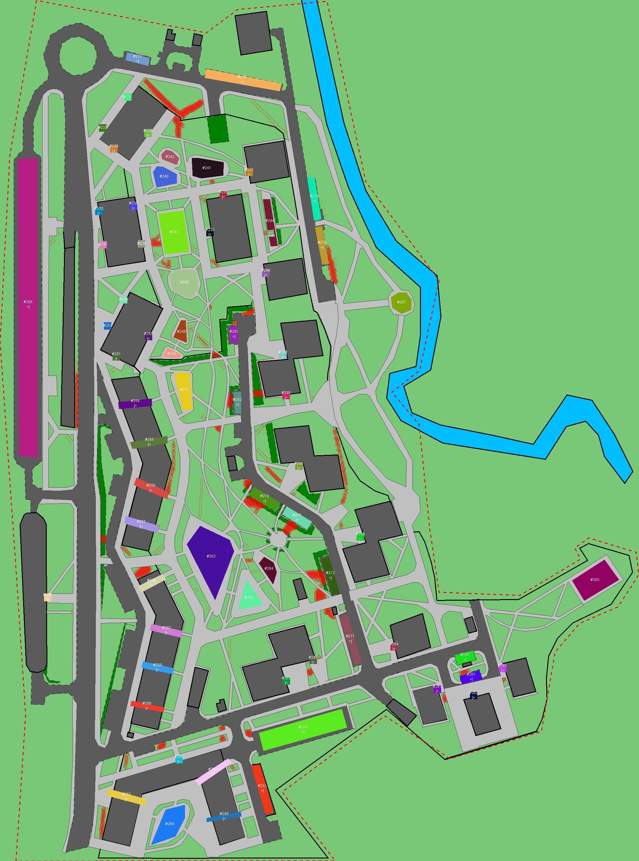 Красным цветом показаны места, где, вероятнее всего, появятся стихийные тропы..