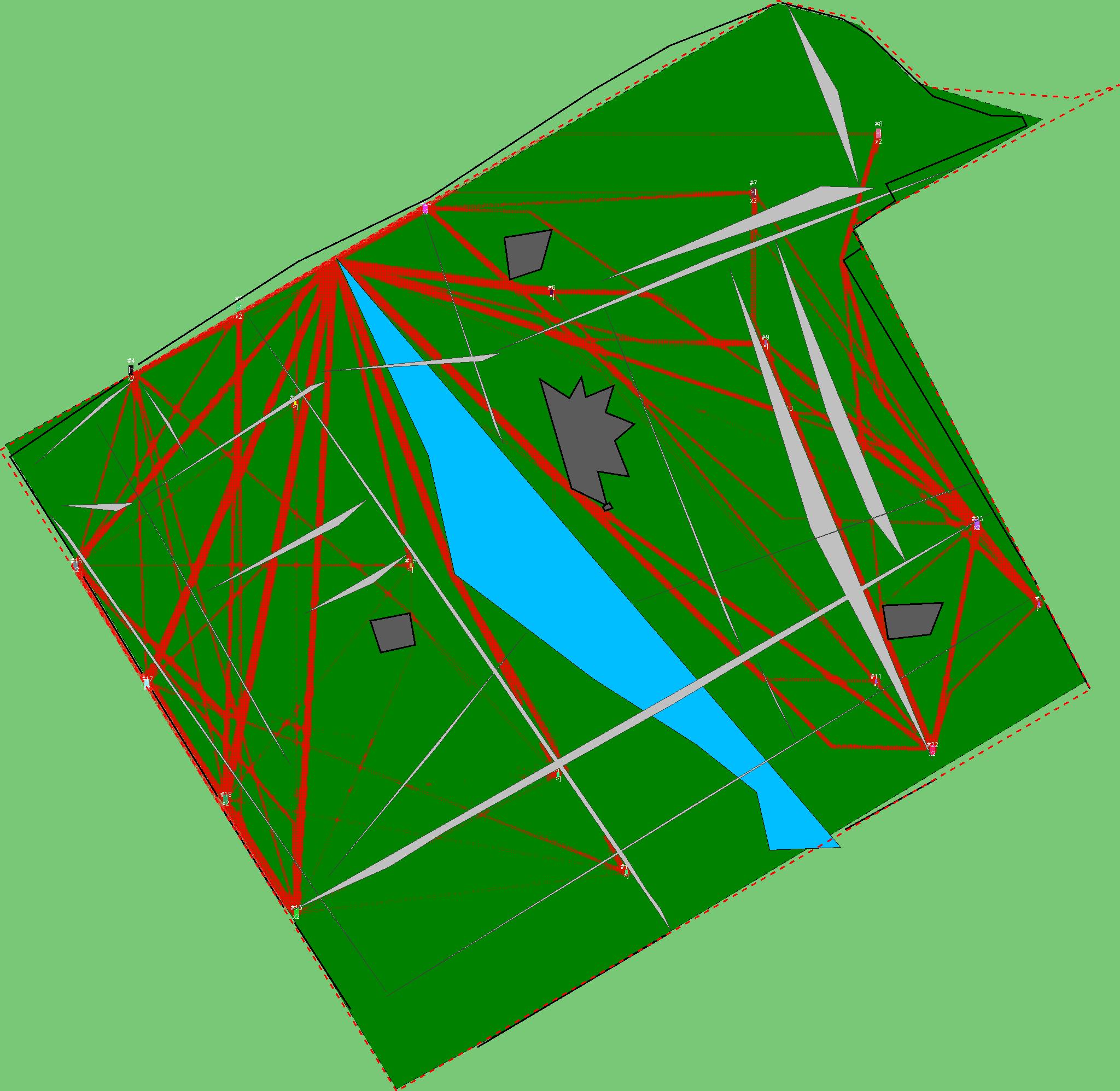 Красным цветом показаны места, где, вероятнее всего, появятся стихийные тропы..
