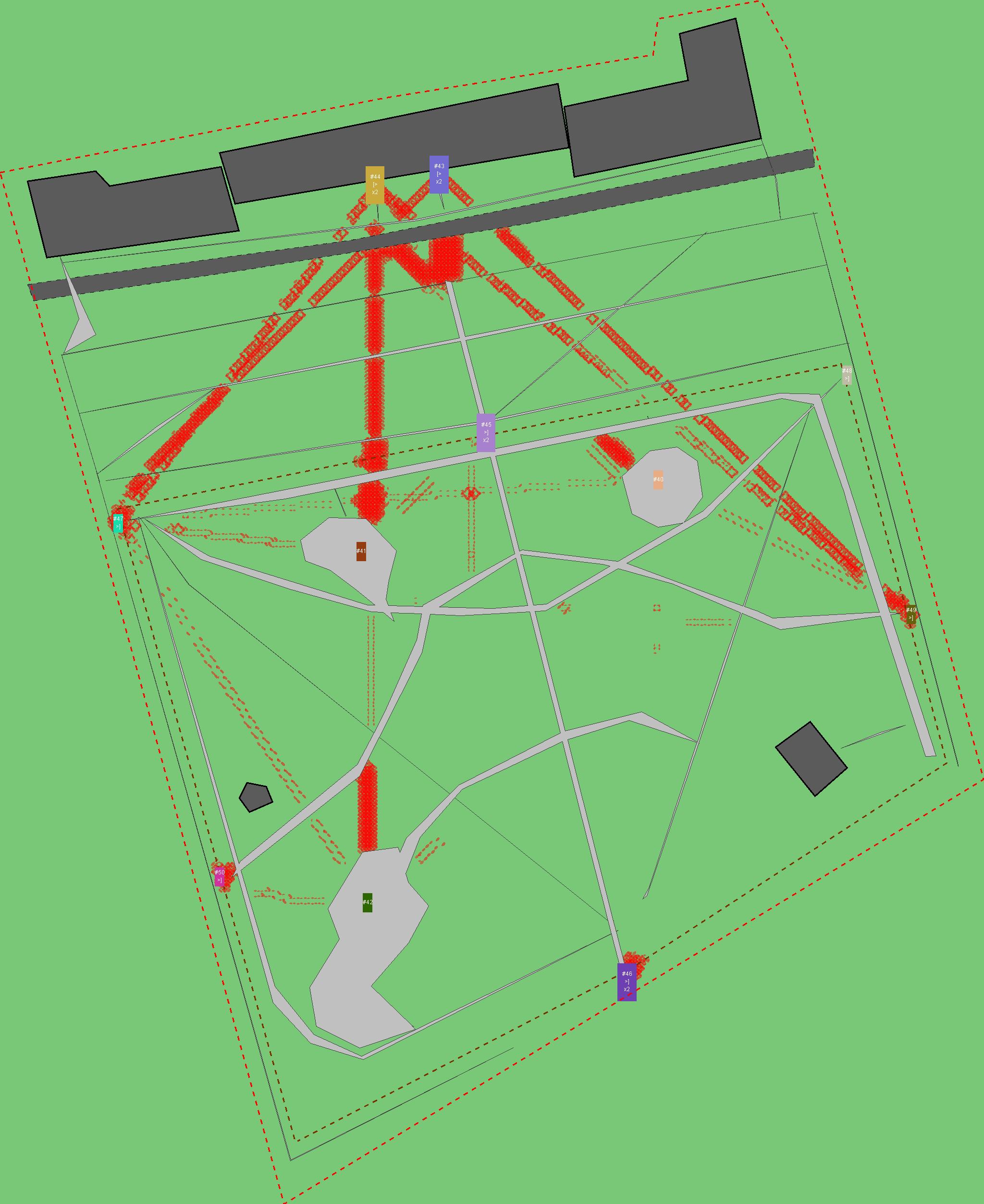 Красным цветом показаны места, где, вероятнее всего, появятся стихийные тропы..