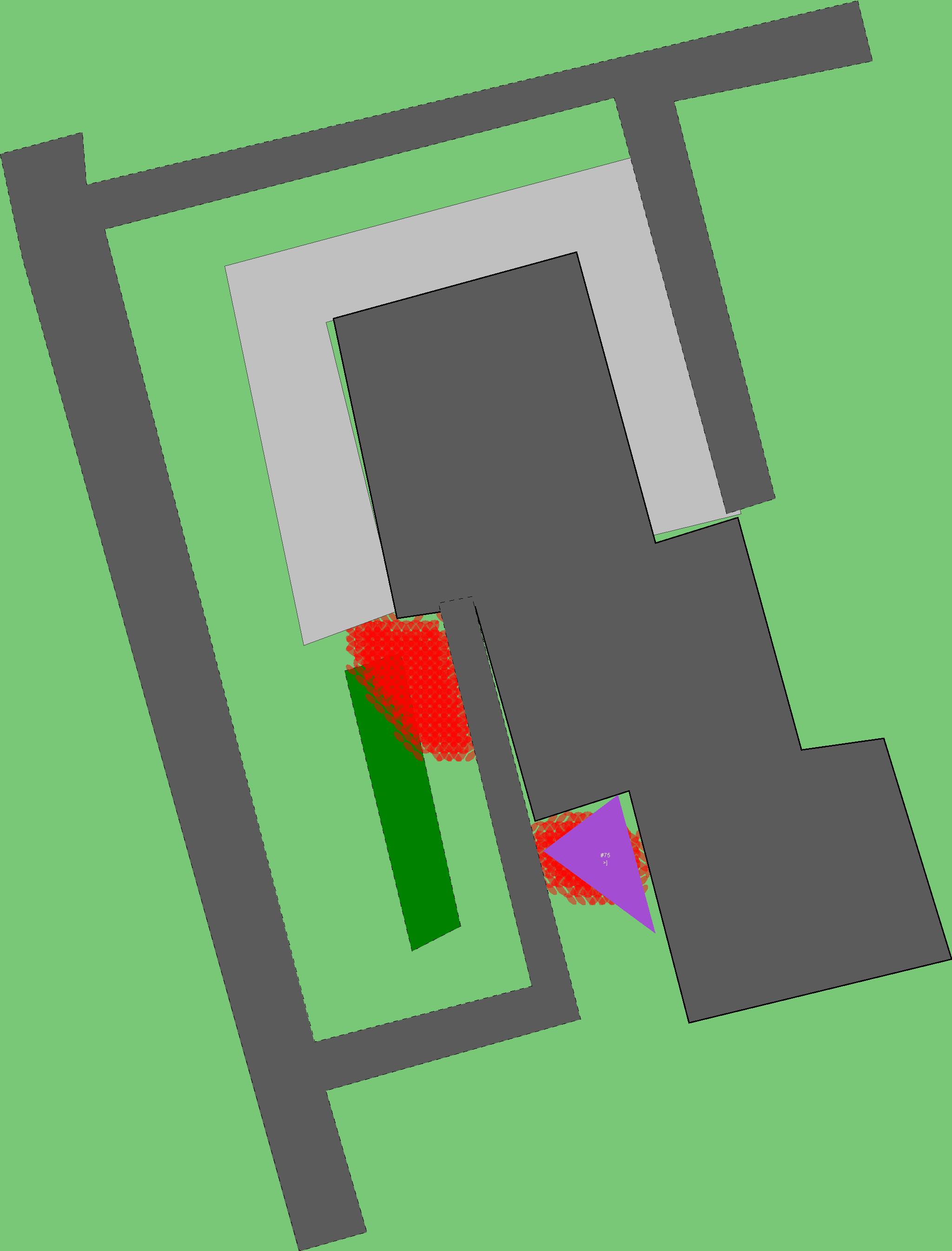 Красным цветом показаны места, где, вероятнее всего, появятся стихийные тропы..