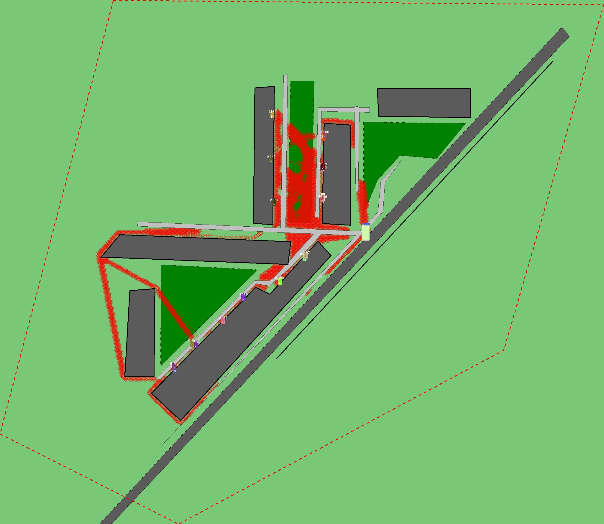 Красным цветом показаны места, где, вероятнее всего, появятся стихийные тропы..